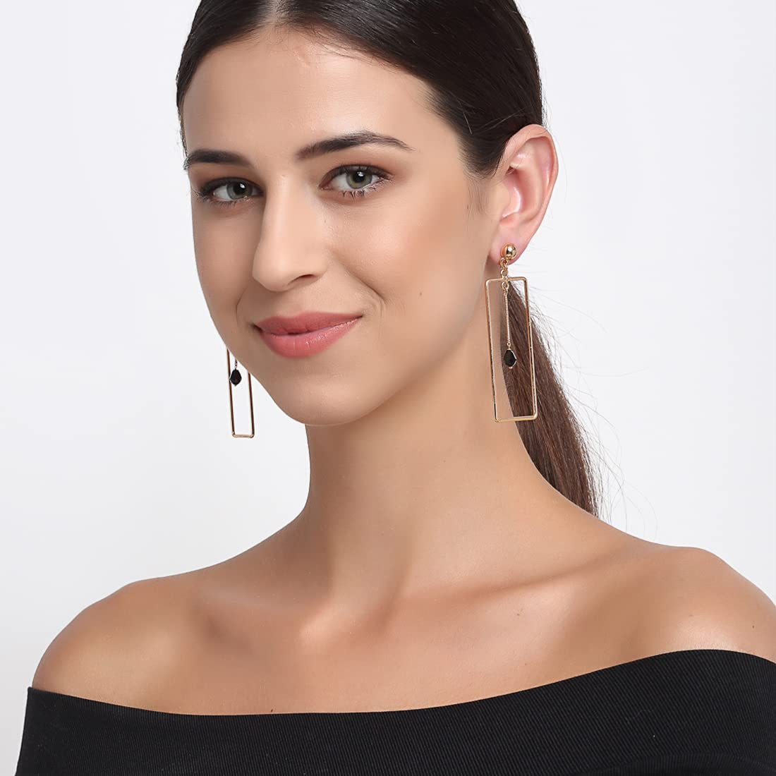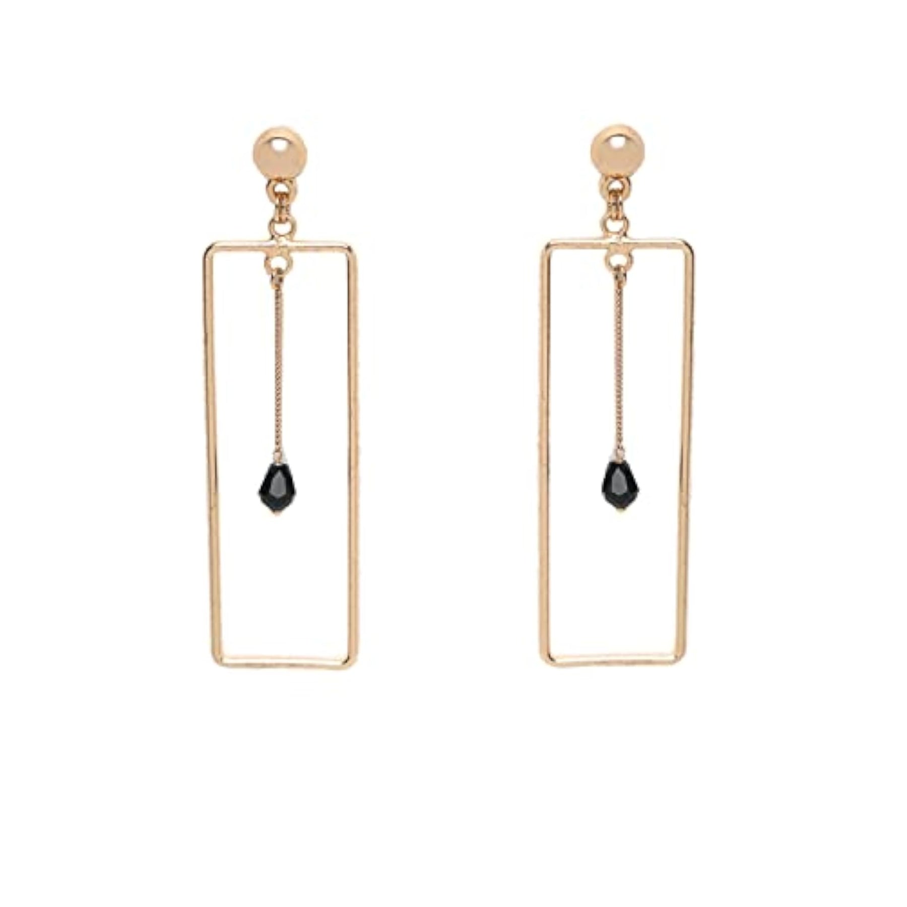 Add a touch of geometric elegance to your look with these metal drop earrings featuring intricate patterns.