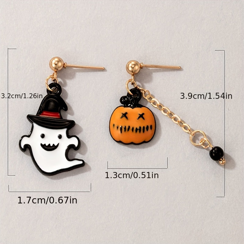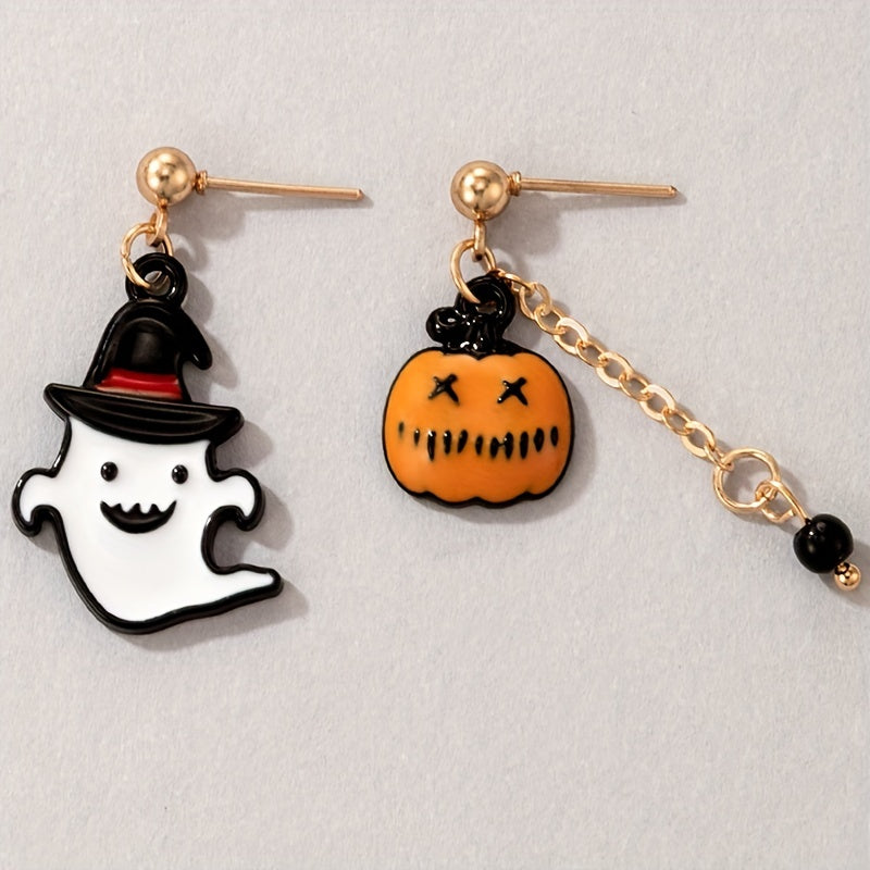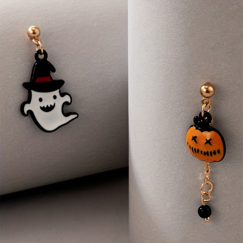 These Halloween-themed earrings feature a ghost and horror pumpkin design, perfect for adding a spooky touch to your outfit. Made of high-quality alloy, these earrings are a great gift for any female jewelry lover.
