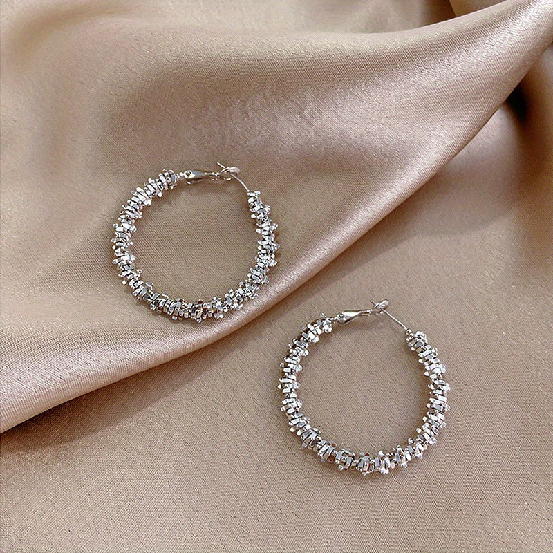 Add some sparkle to your outfit with these stunning chunky hoop earrings. Made with hypoallergenic materials and plated with 18K gold, these earrings are perfect for women and girls.