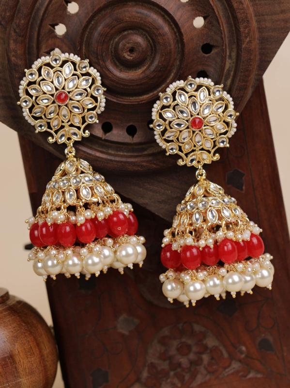 Elegant and luxurious gold-plated chandbali earrings adorned with shimmering kundan stones.