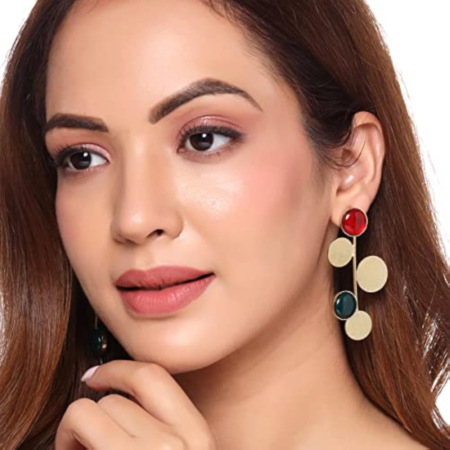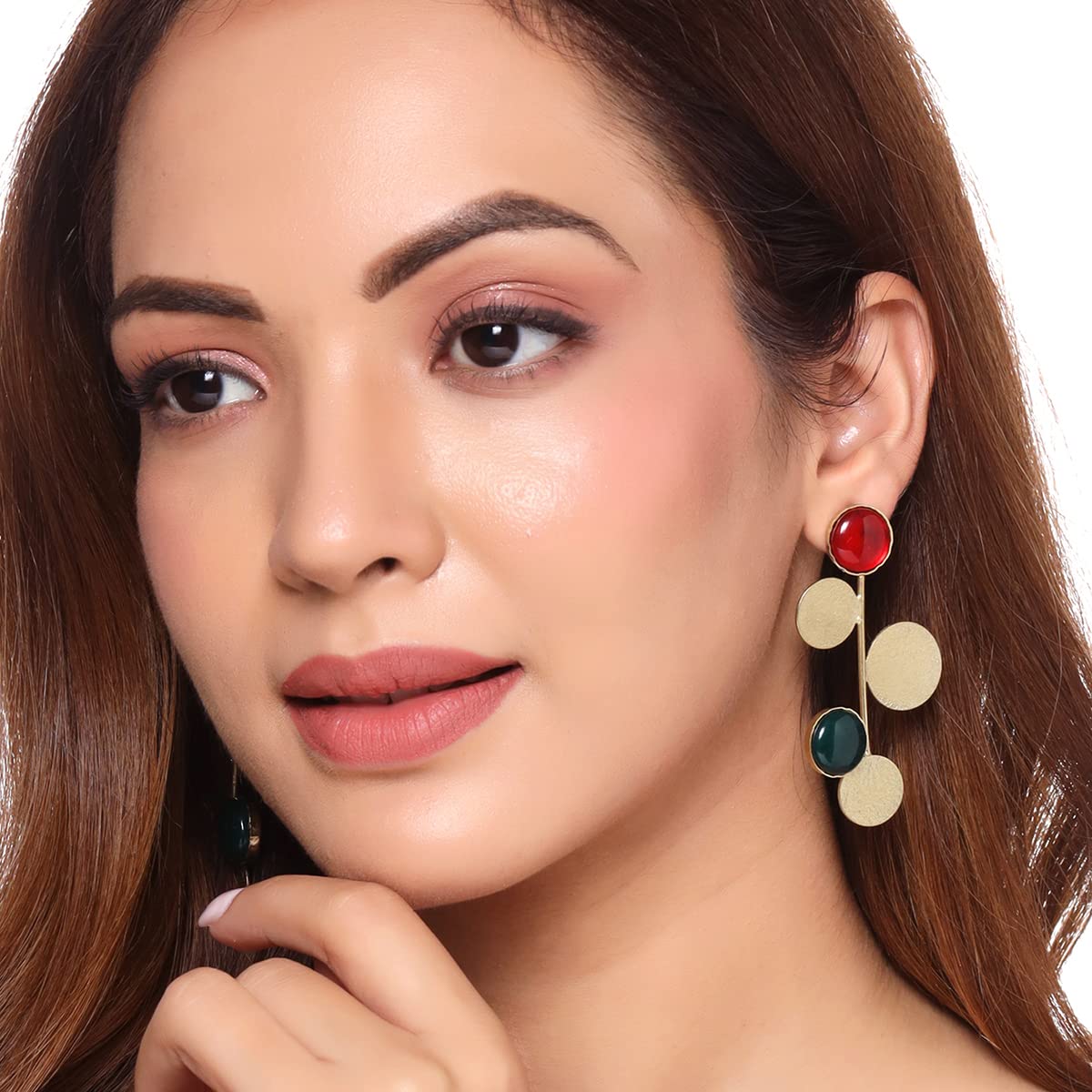 These elegant earrings feature dual stone studded design, perfect for adding a touch of glamour to any outfit. Ideal gift for birthdays or anniversaries.