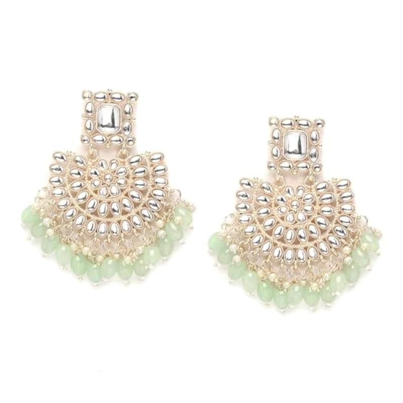 Exquisite gold-plated earrings with Kundan studded crescent design, ideal for special occasions.