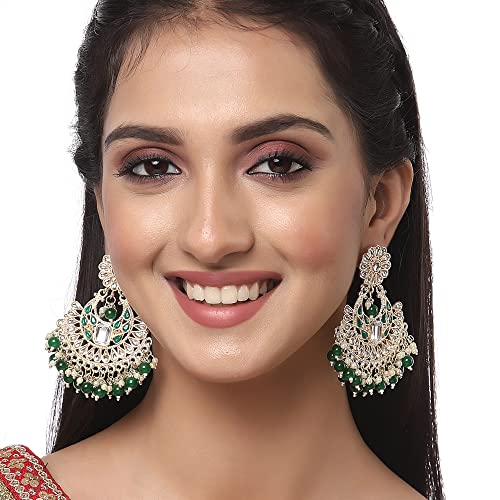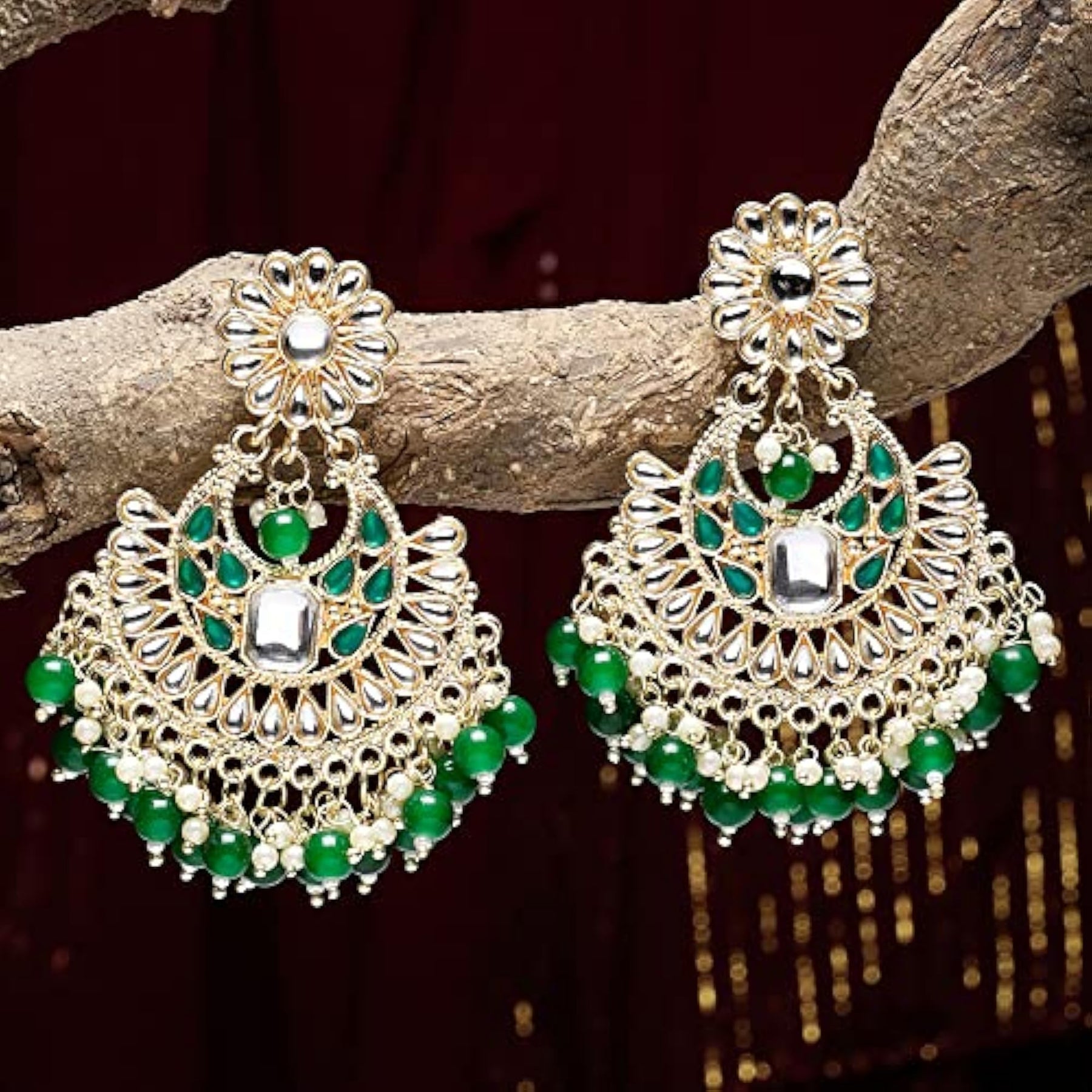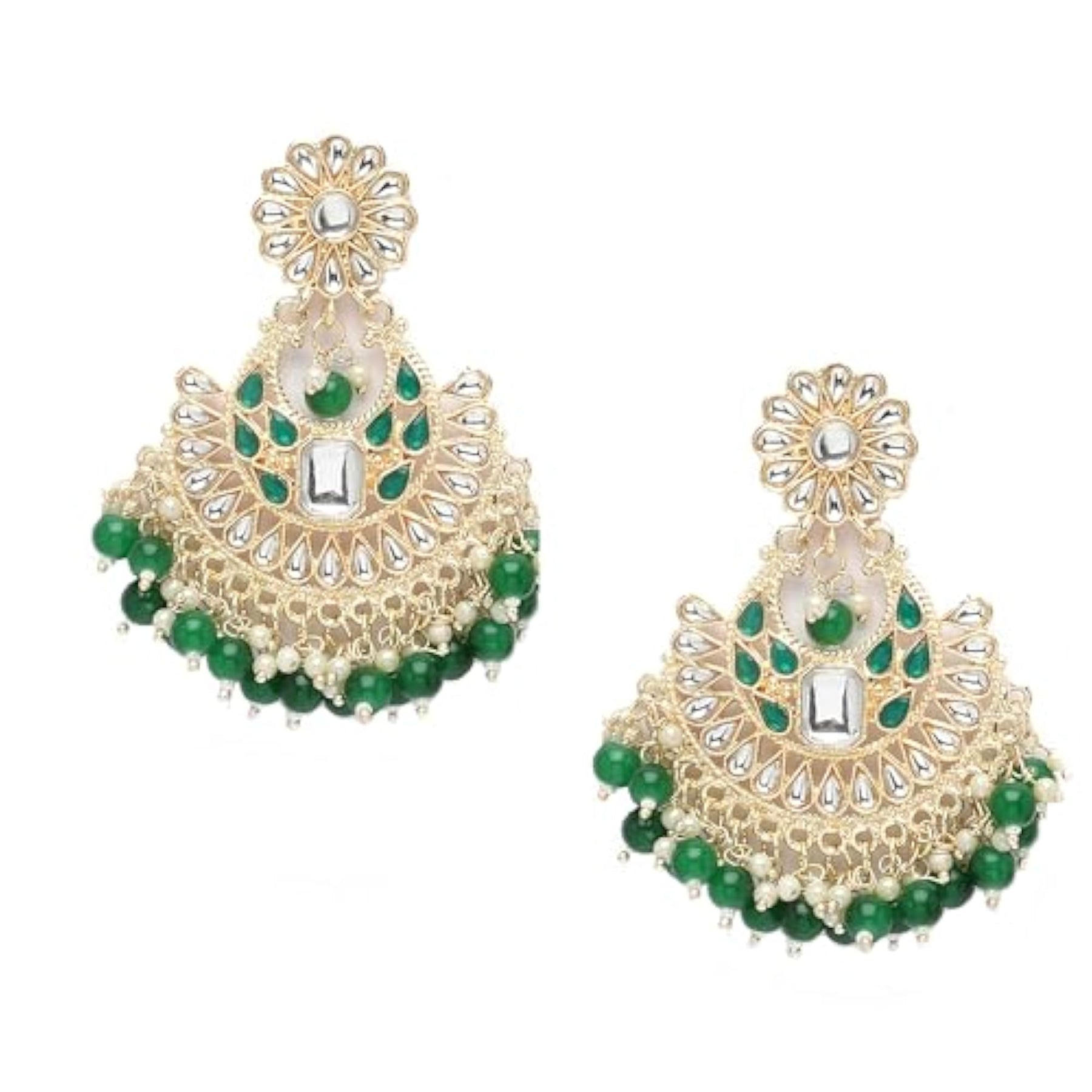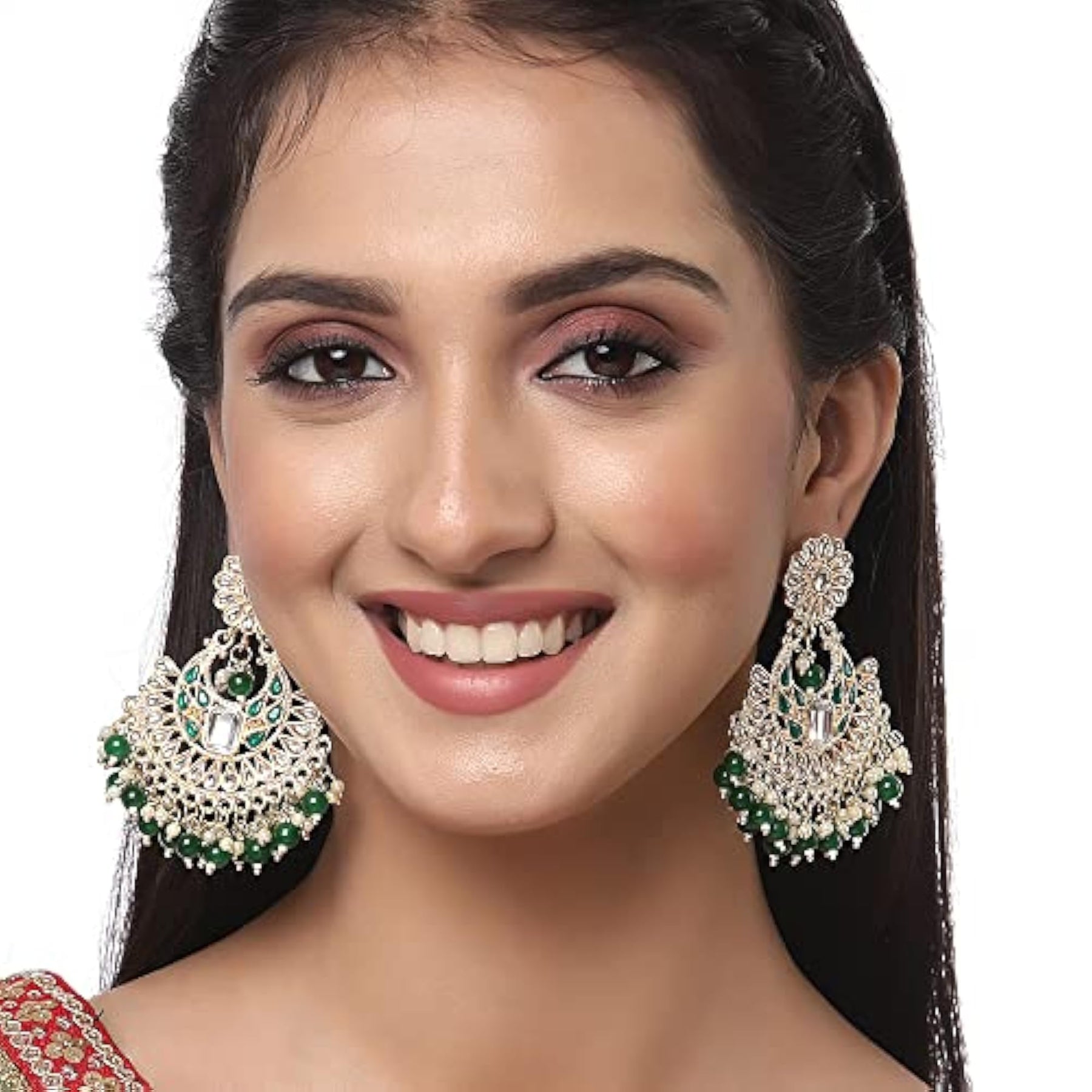 Elegant gold-plated earrings with Kundan studded crescent design.