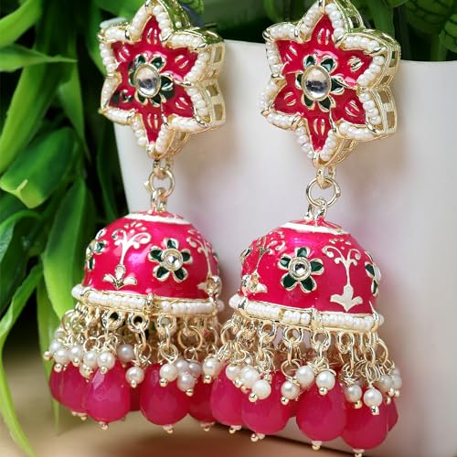 Elegant earrings featuring a star-shaped design with Kundan, pearls, and enamel detailing. Perfect for adding a touch of sophistication to any outfit.