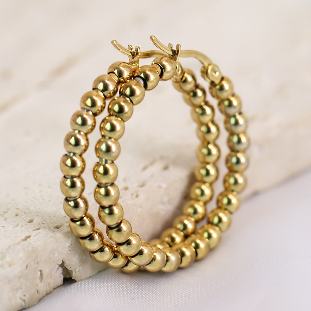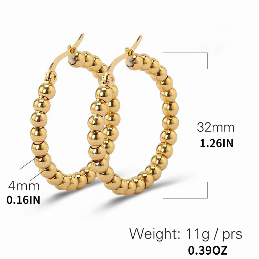 Golden Bead Hoop Earrings 14K Plated Jewelry For Women