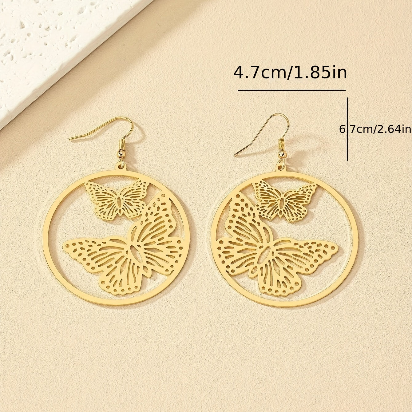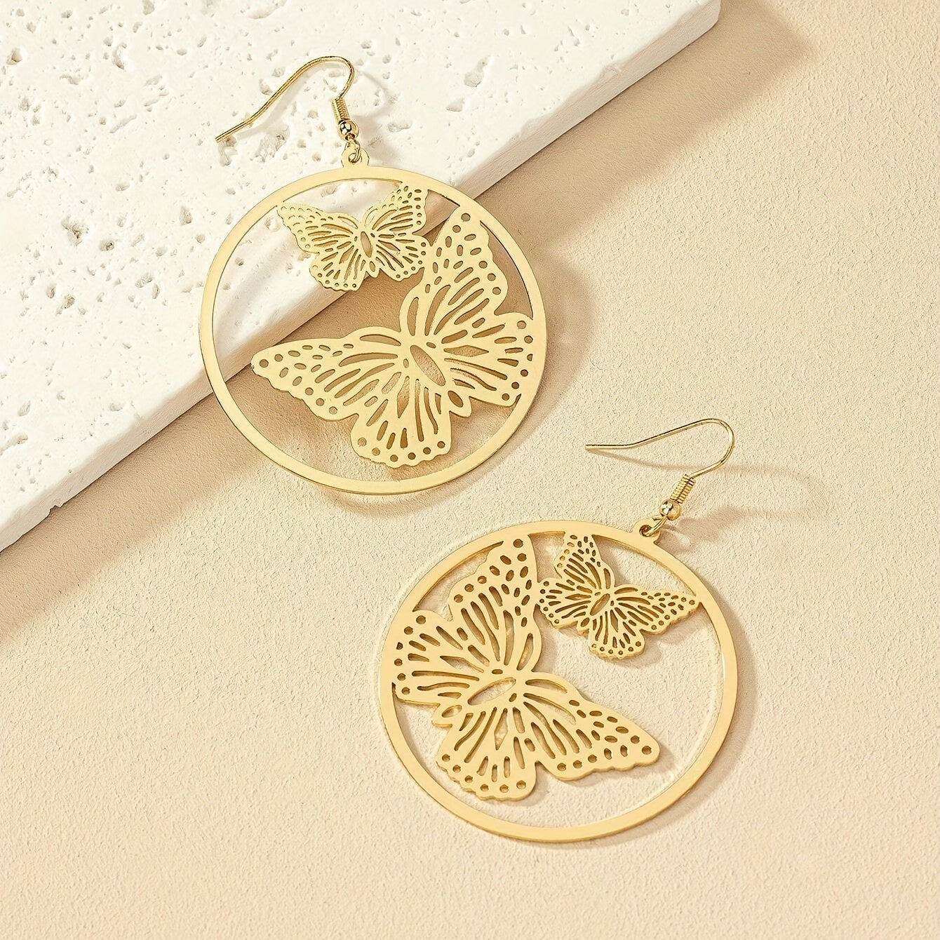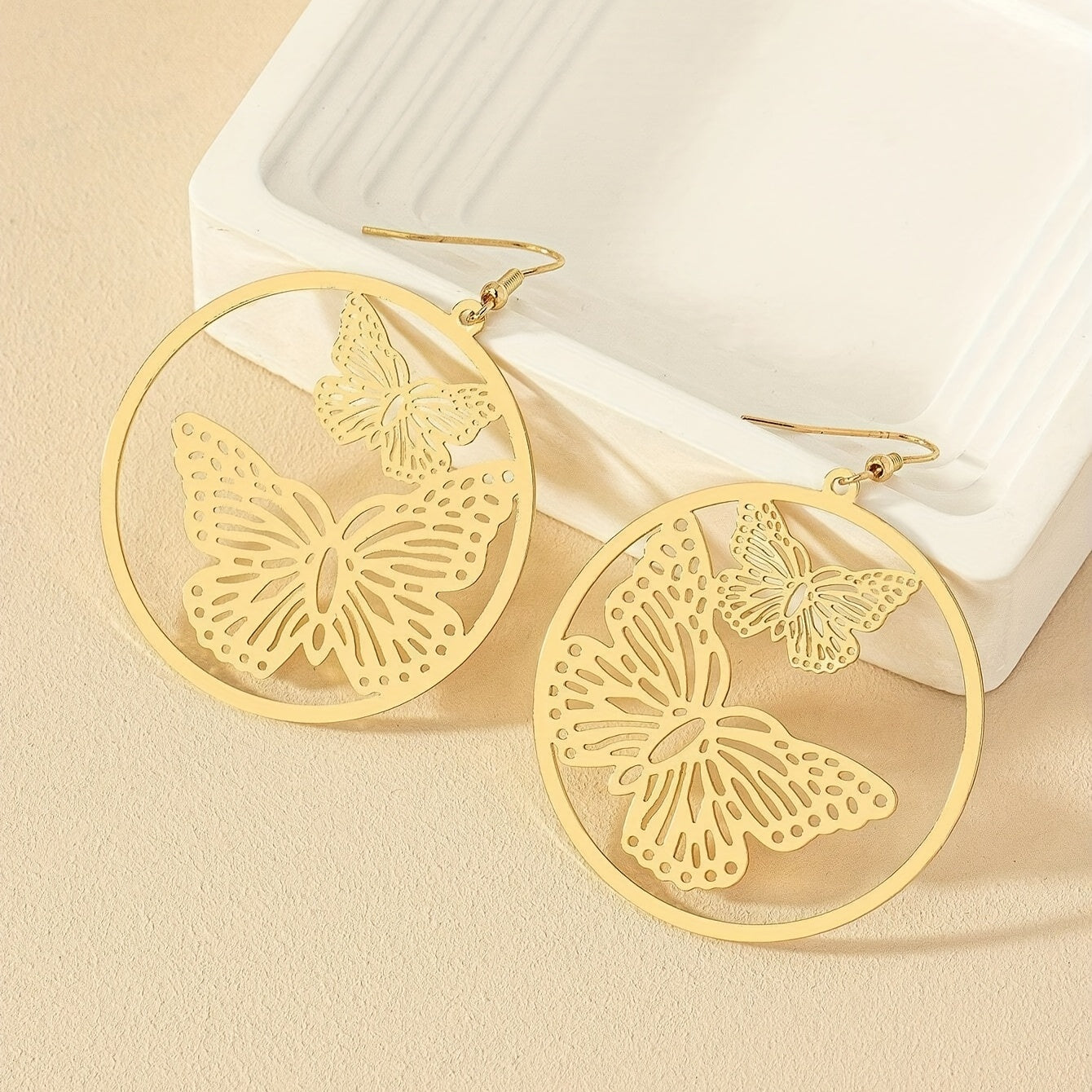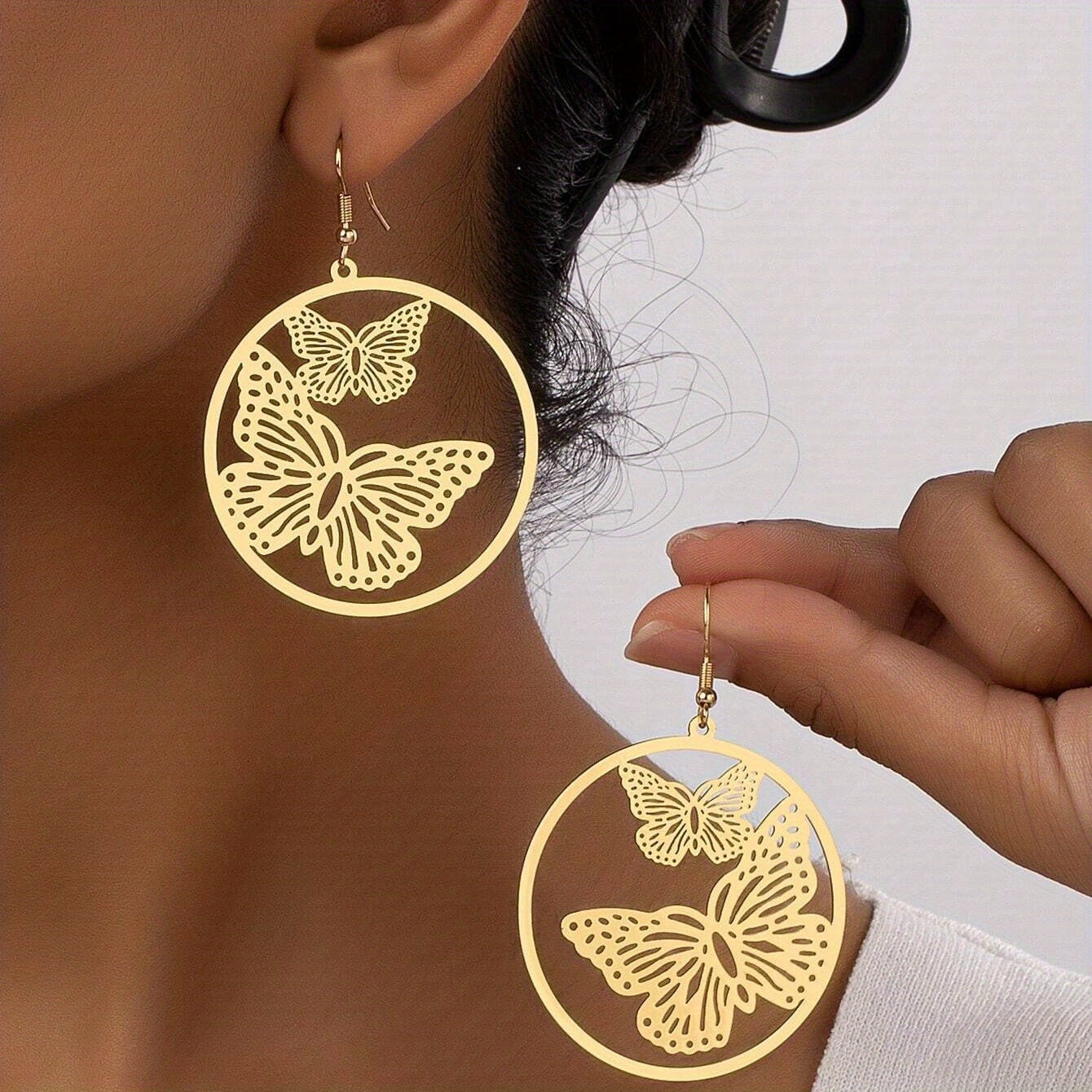 Elegant hollow butterfly hoop earrings made of alloy with 18K gold plating. Perfect for adding a touch of glamour to any outfit.