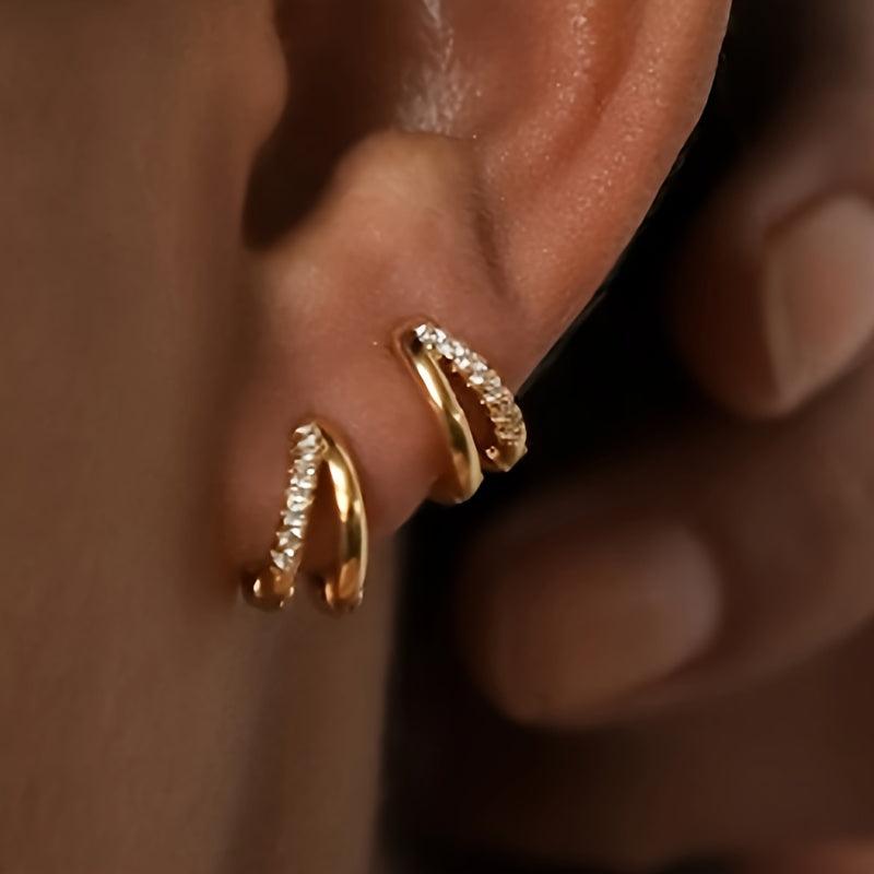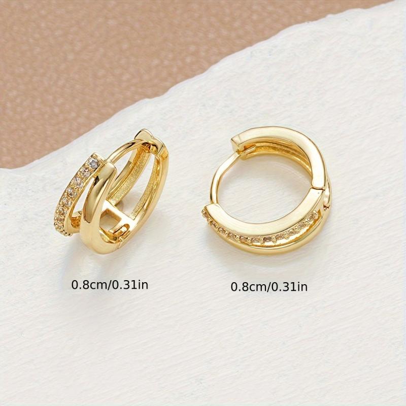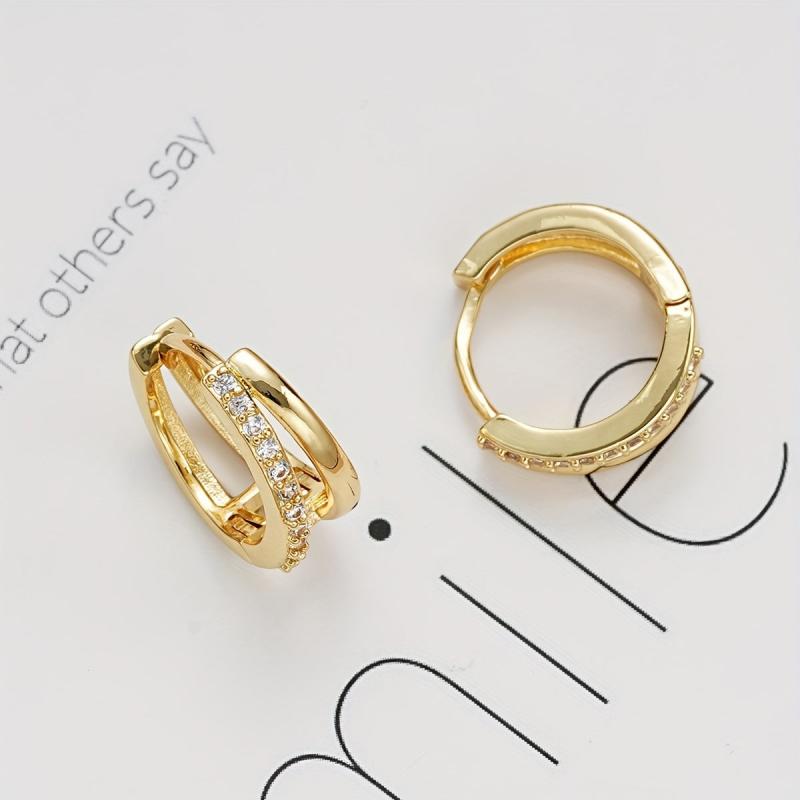 Add a touch of glamour with these golden toned copper double hoop earrings featuring rhinestones. Perfect for daily wear, vacations, and parties.