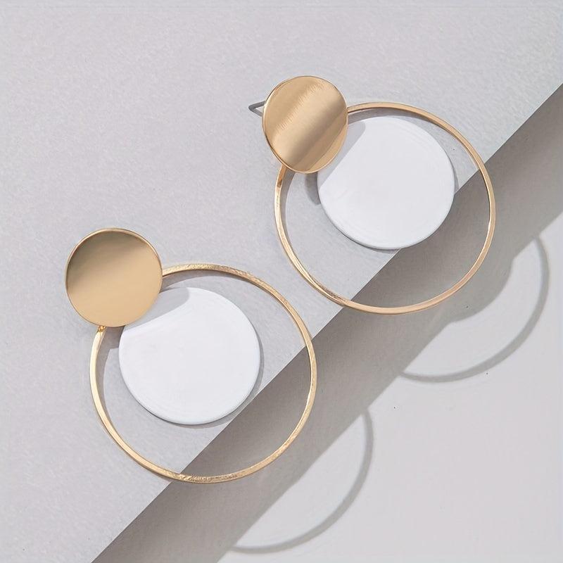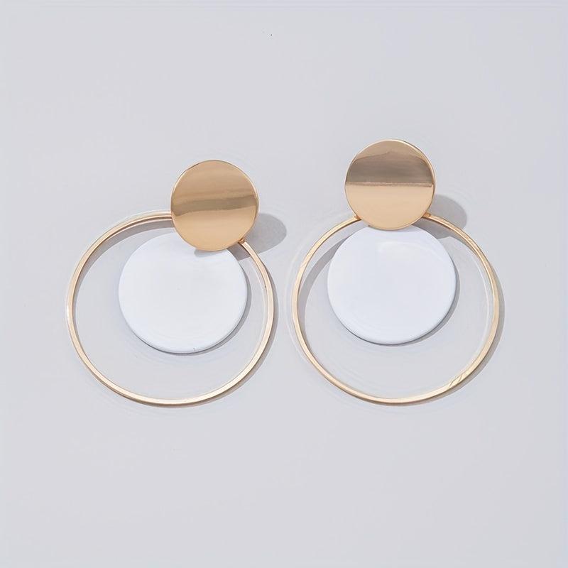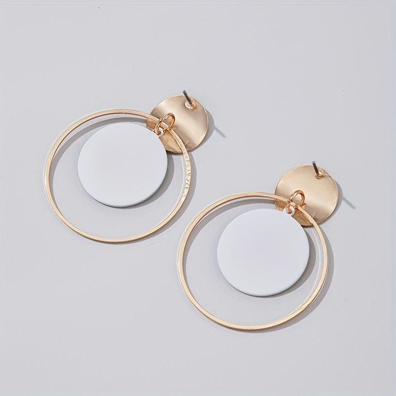 These elegant dangle earrings are perfect for daily wear and make a great gift for females. The minimalist design features golden disc decorations. Made from high-quality alloy, these earrings are a stylish accessory.