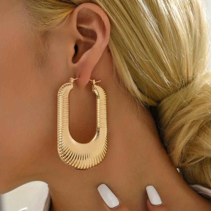 Add a touch of retro elegance to your outfit with these golden geometric dangle earrings. They are made of high-quality alloy and are a perfect accessory for the holidays or as a gift for a special woman in your life.
