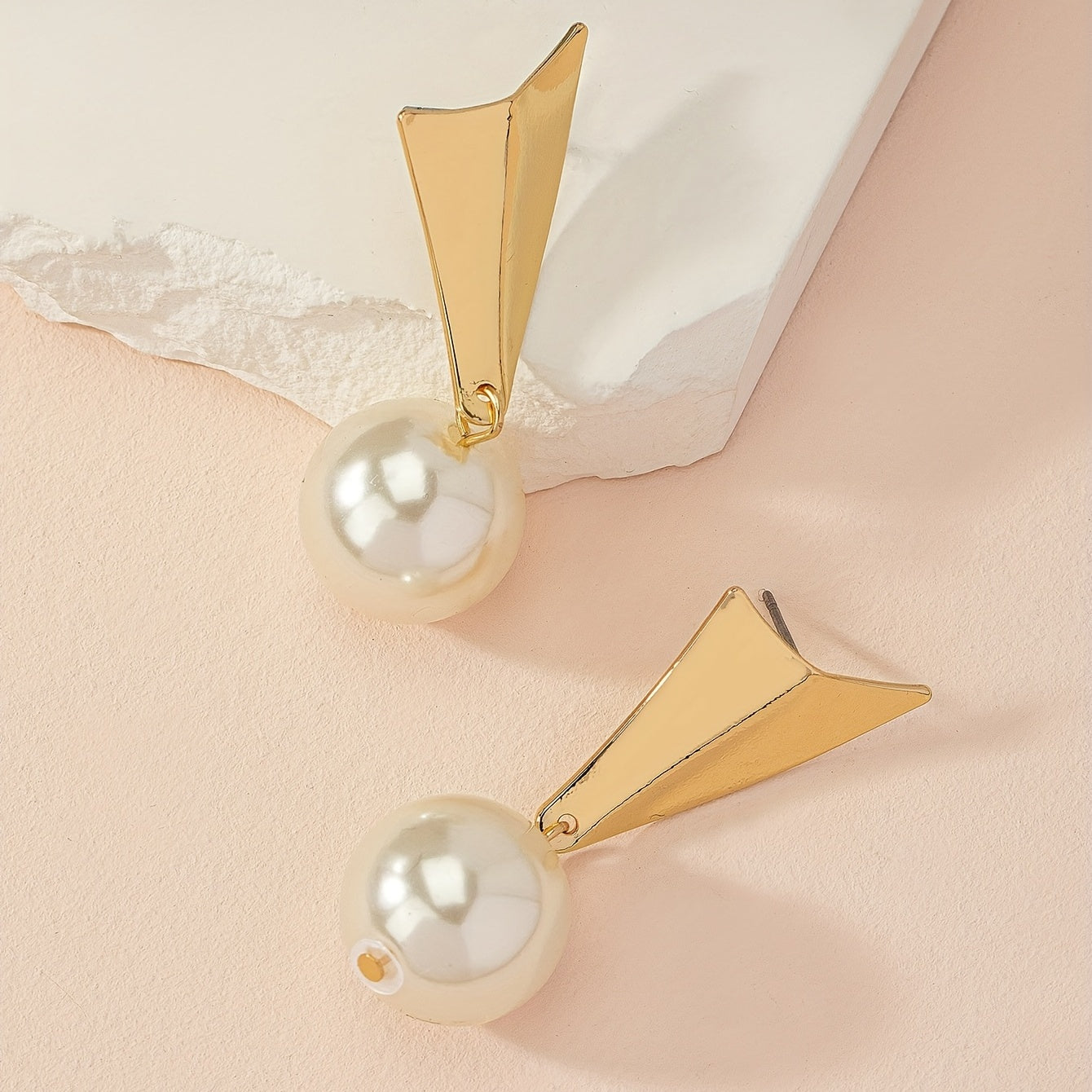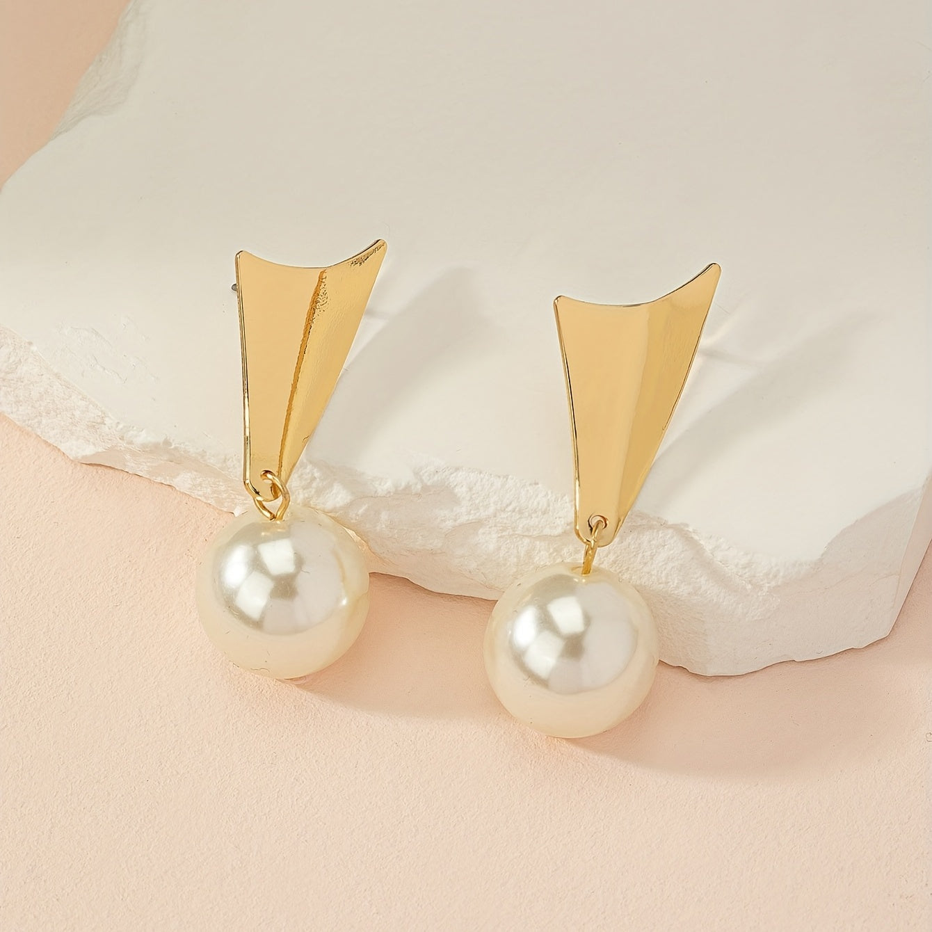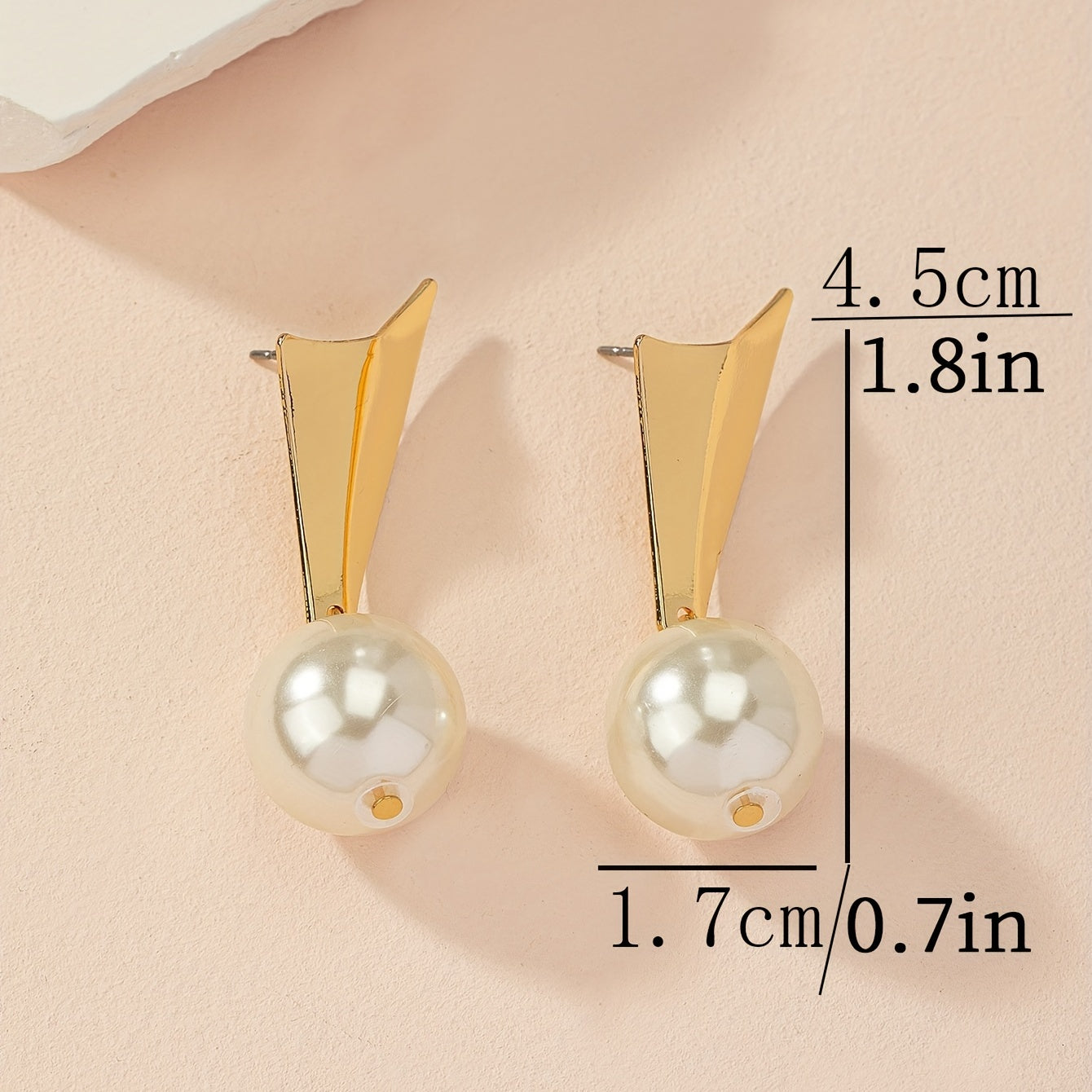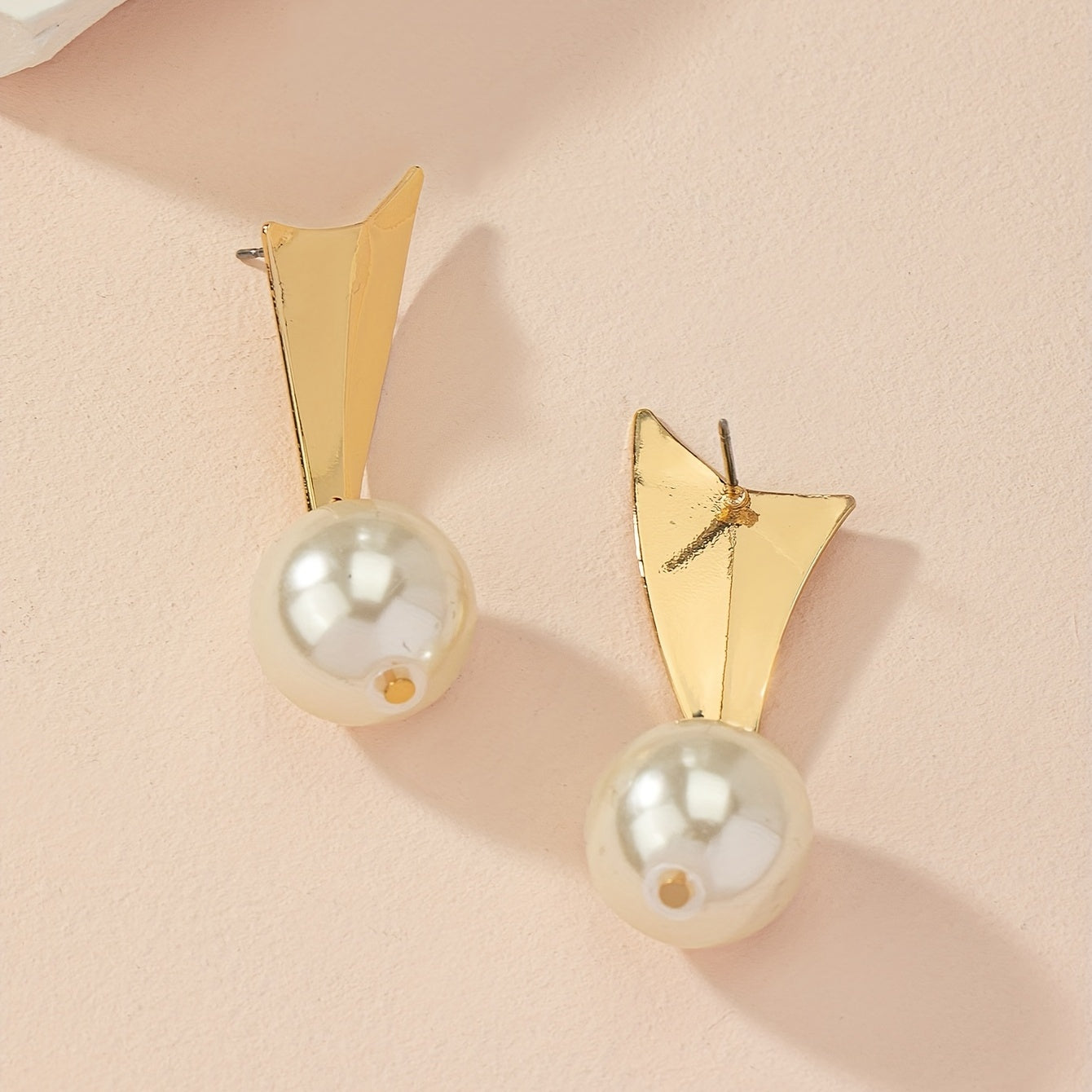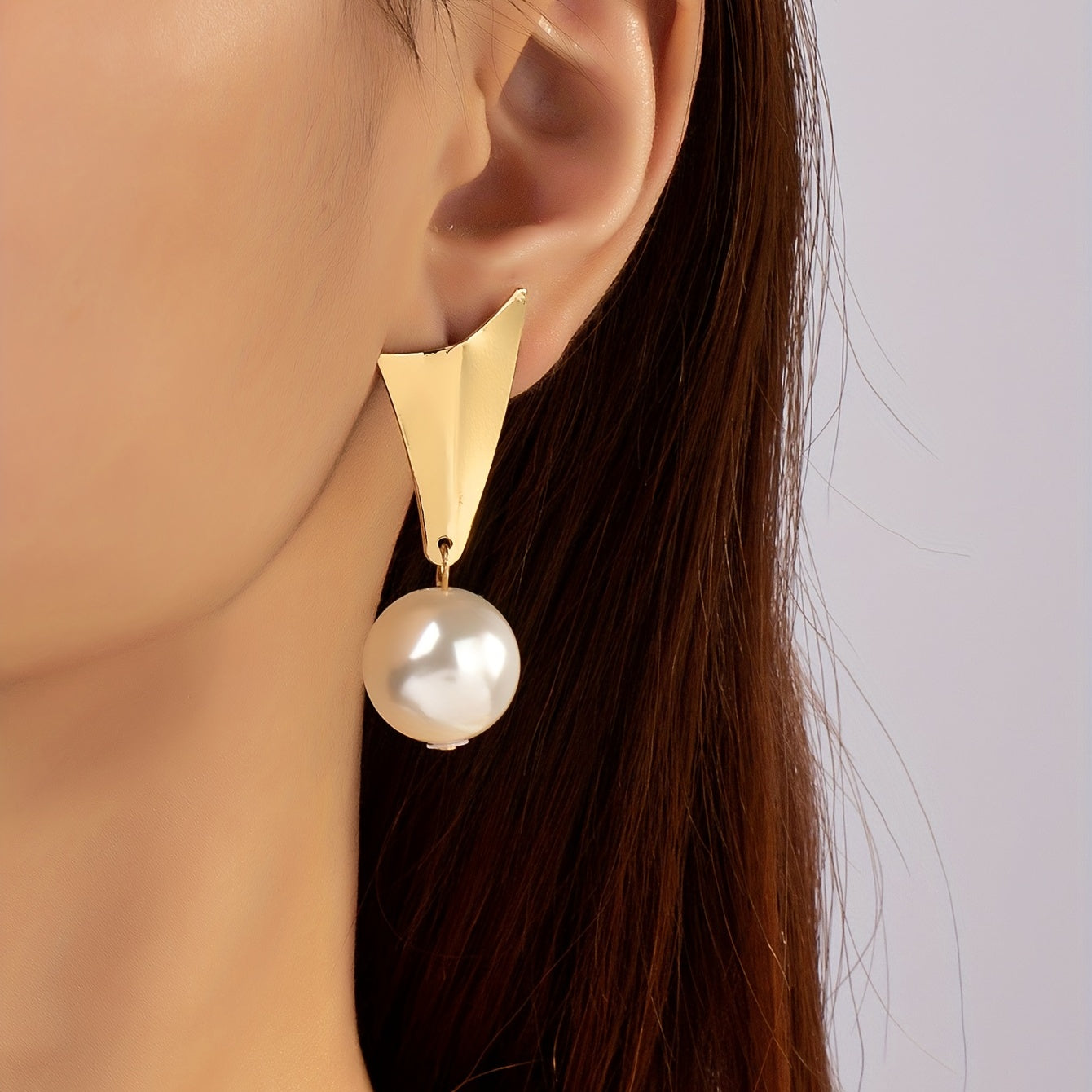 Add a touch of retro style to your look with these elegant dangle earrings. The irregular golden geometric shape design is accentuated by faux pearl decorations, making them perfect for weddings, banquets, or other special occasions.