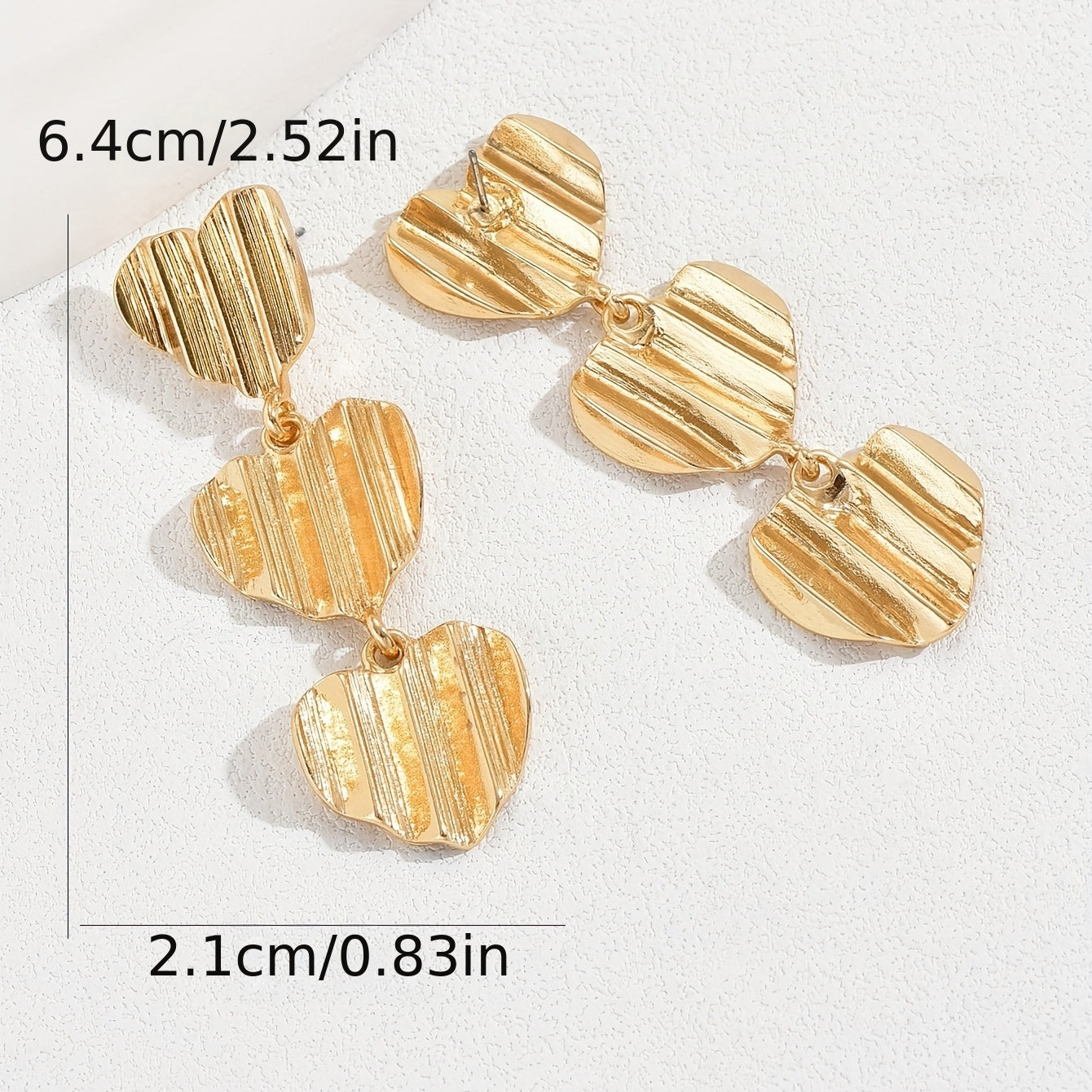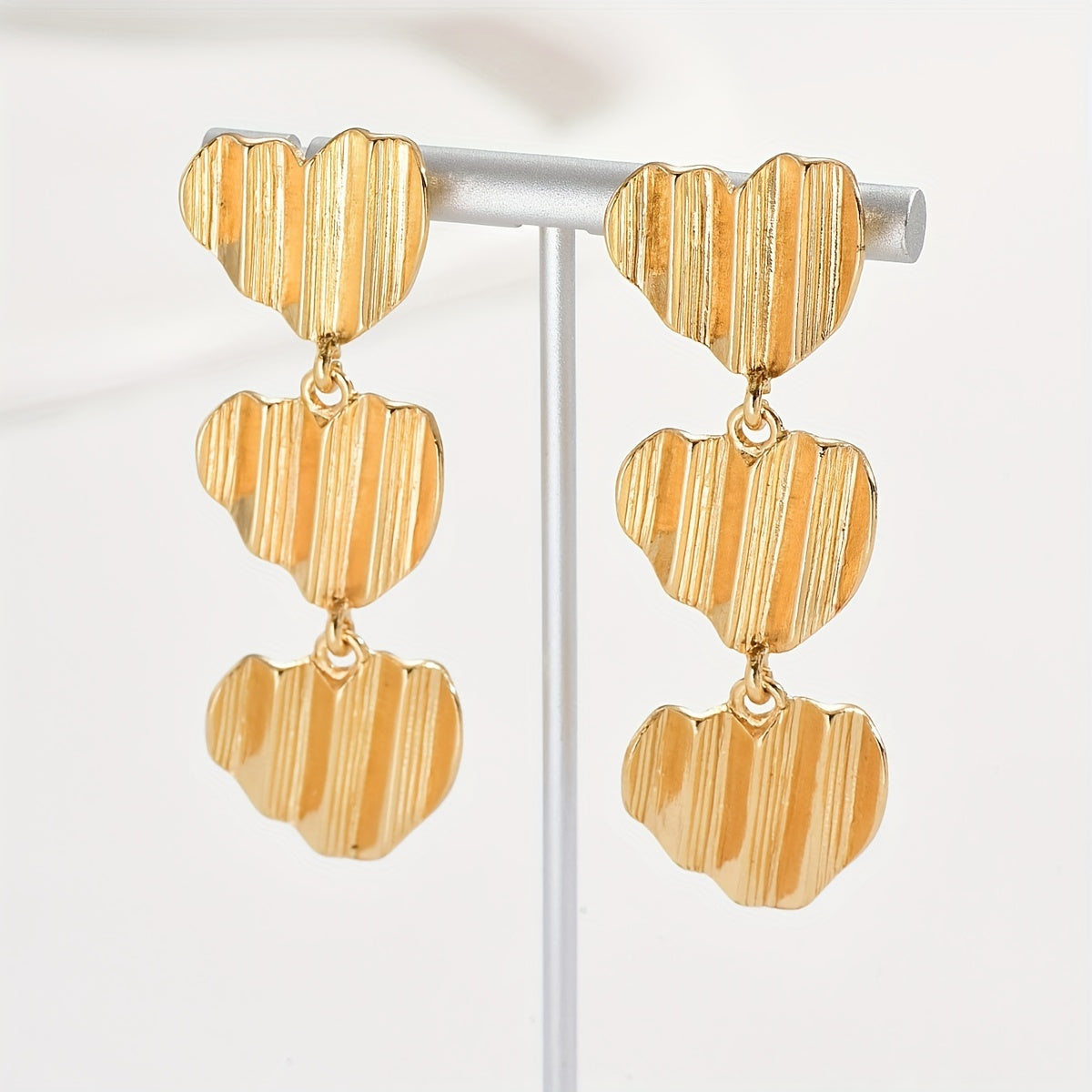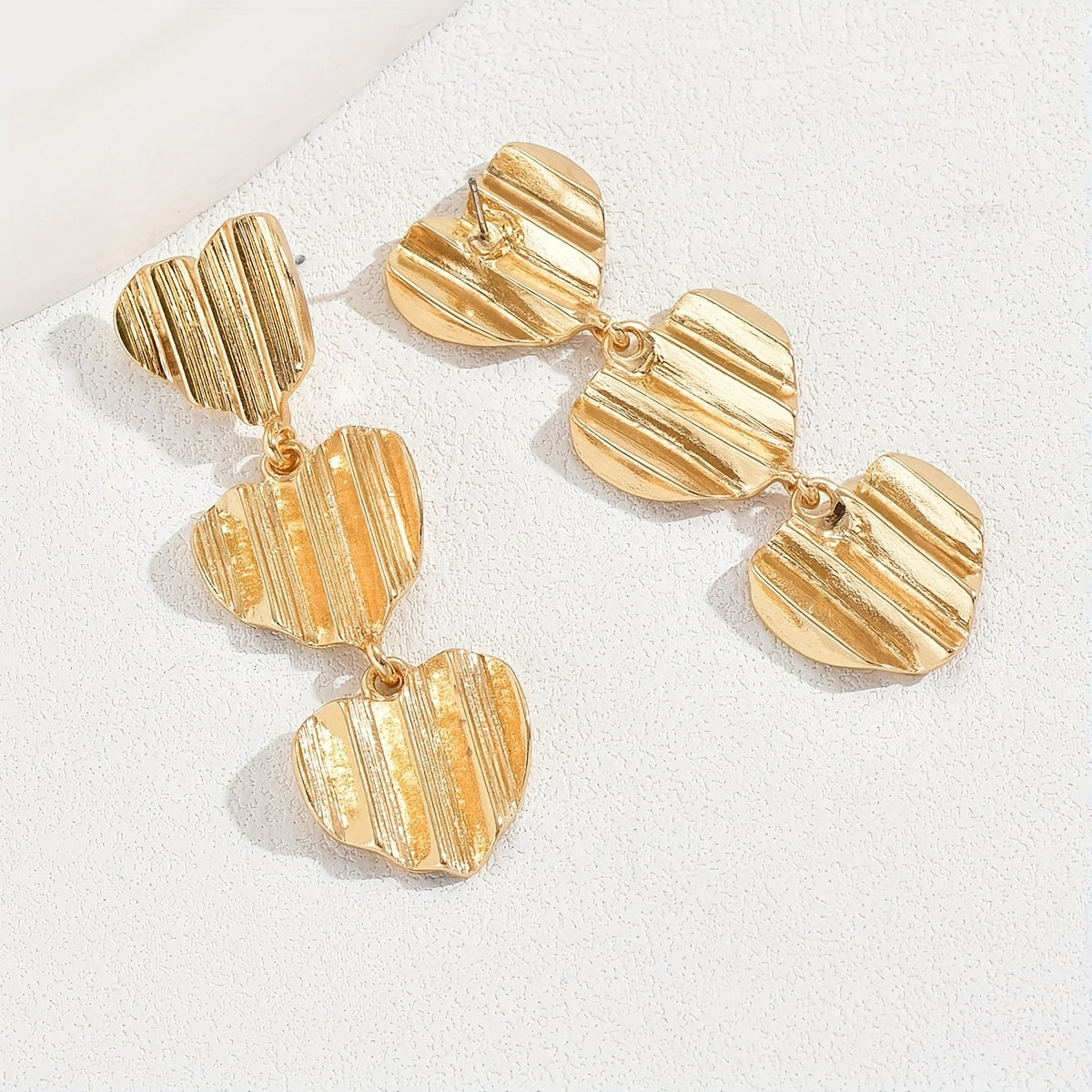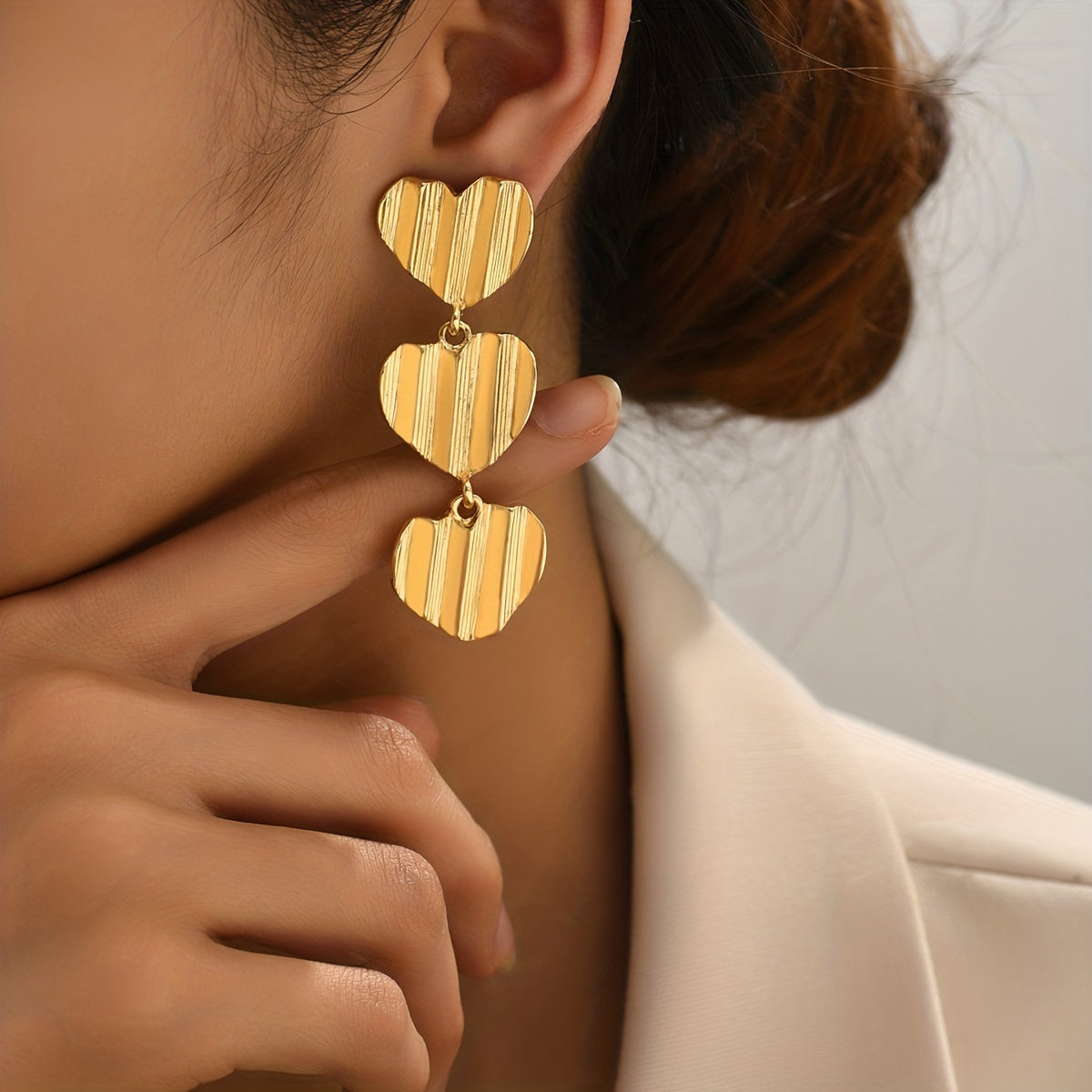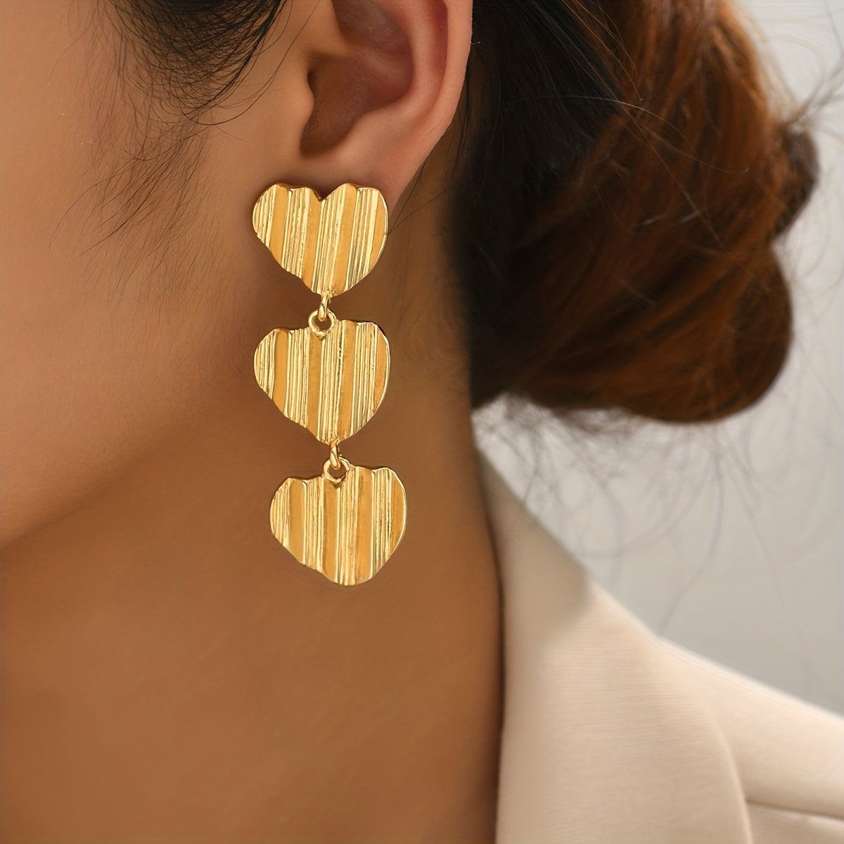 Get a touch of Y2K style with these stunning dangle earrings featuring golden heart charms. Crafted with 18K gold plating for a luxurious finish.