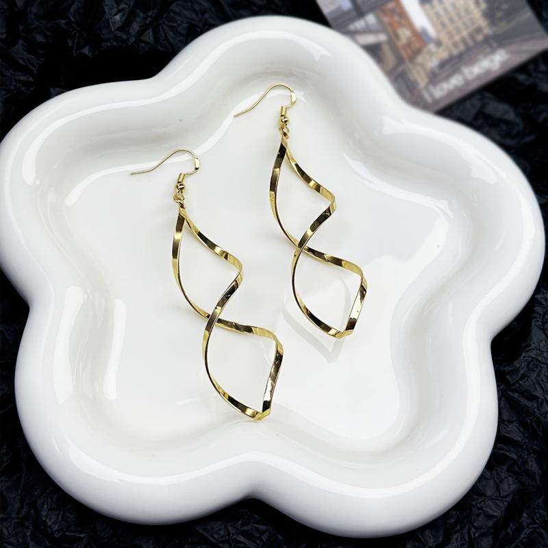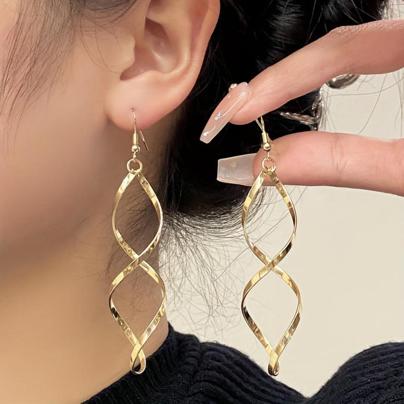 These leisure style earrings feature a golden hollow spiral pattern design. Made of high-quality alloy material, these earrings are perfect for adding a touch of elegance to any outfit.