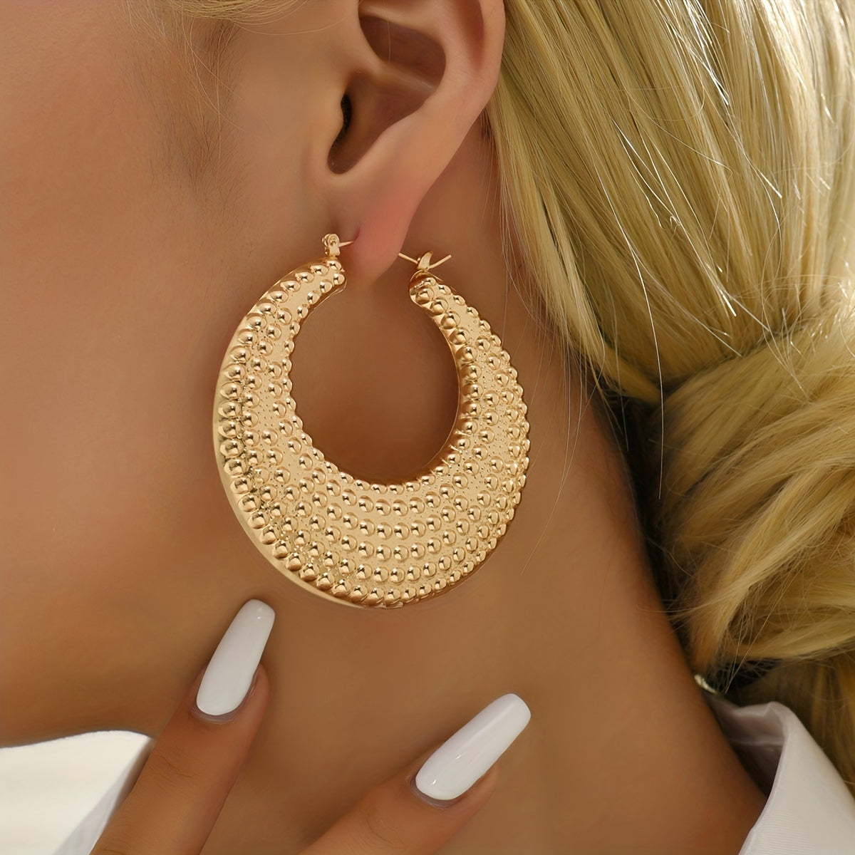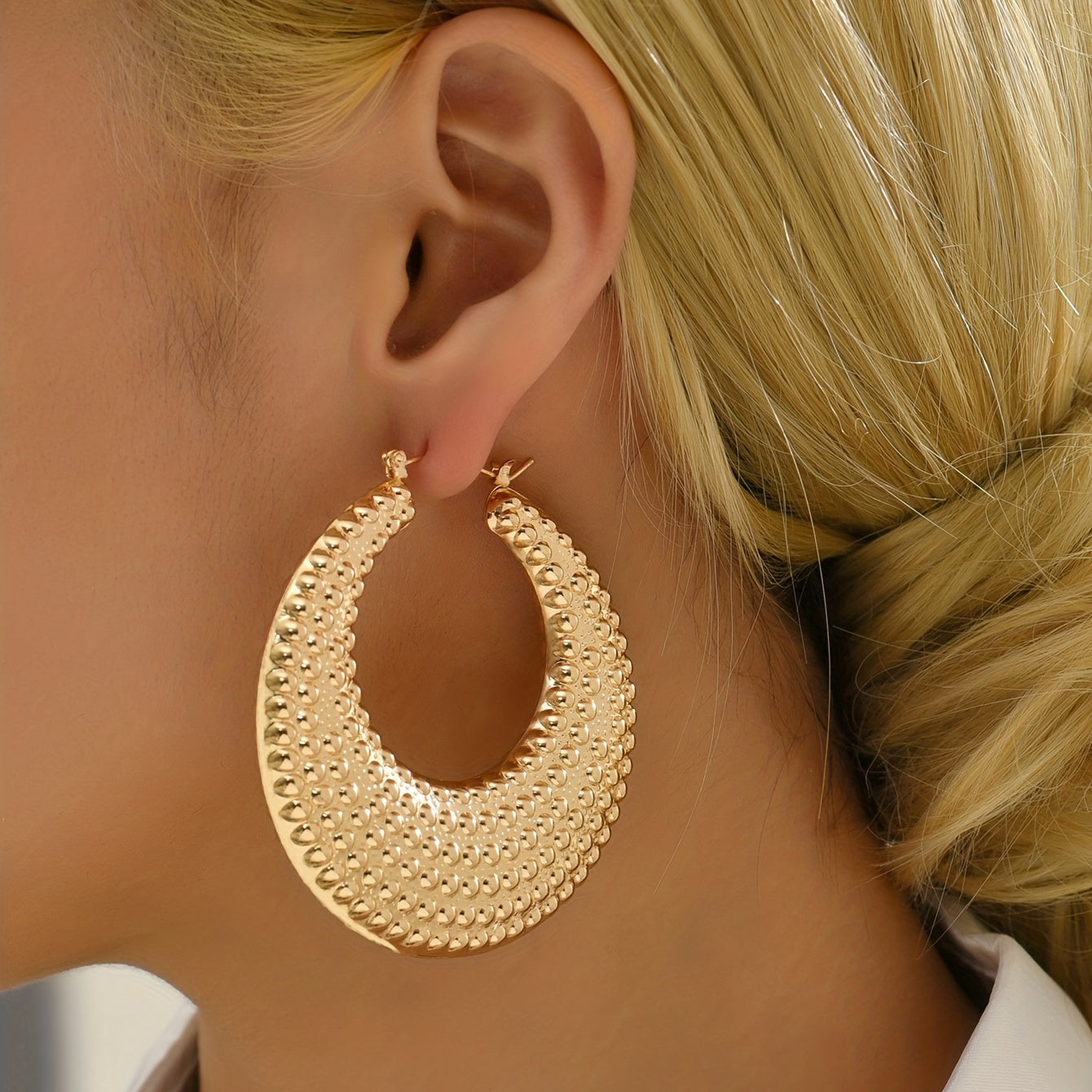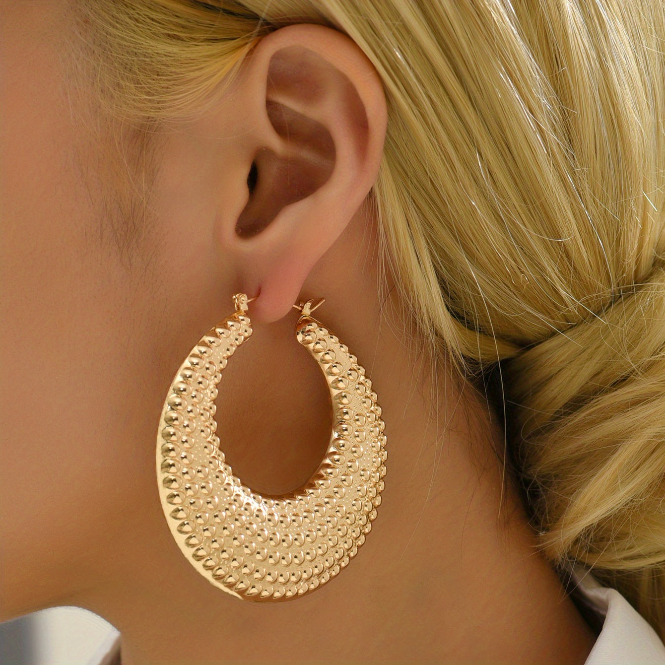 Make a statement with these golden large hoop earrings, perfect for parties and engagements. This retro style alloy accessory is a creative gift for women.