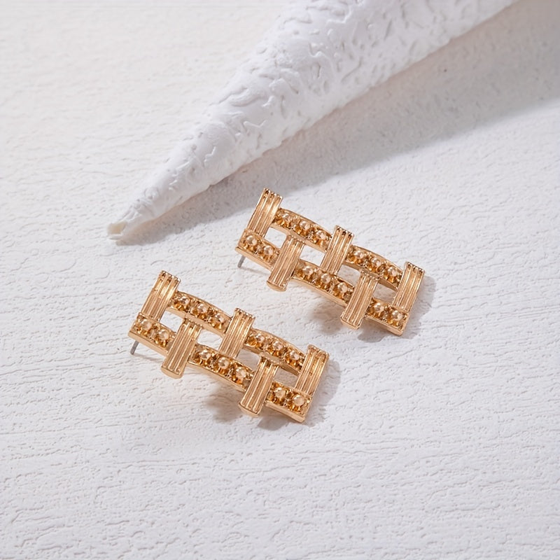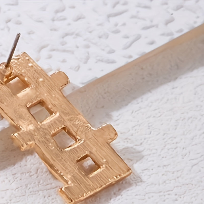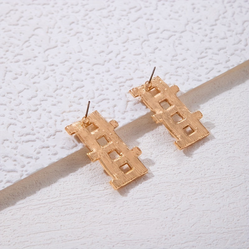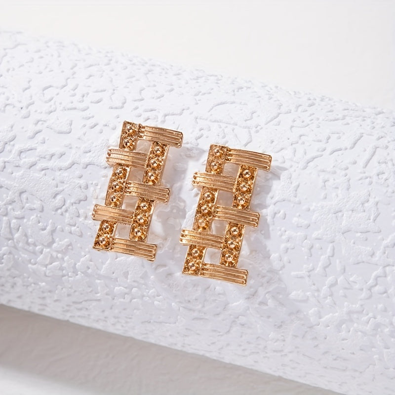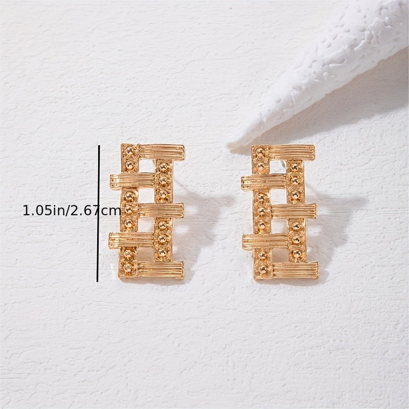 These elegant dangle earrings feature a golden rectangle shape adorned with metal beads, perfect for adding a touch of modern style to any outfit. They are made of high-quality alloy and make a great gift for women.