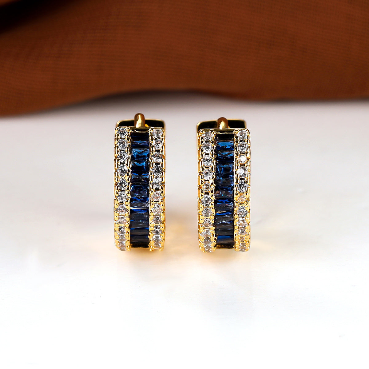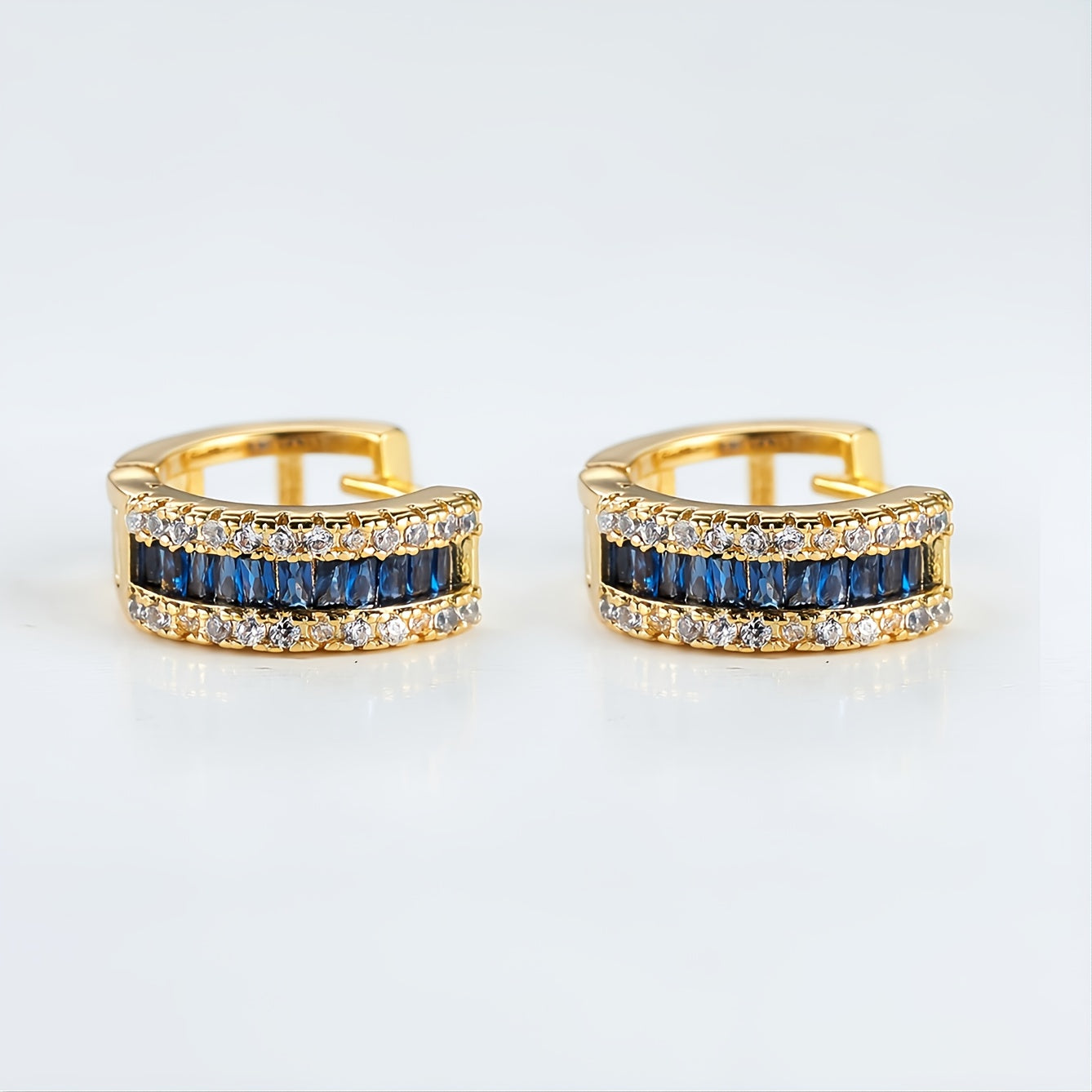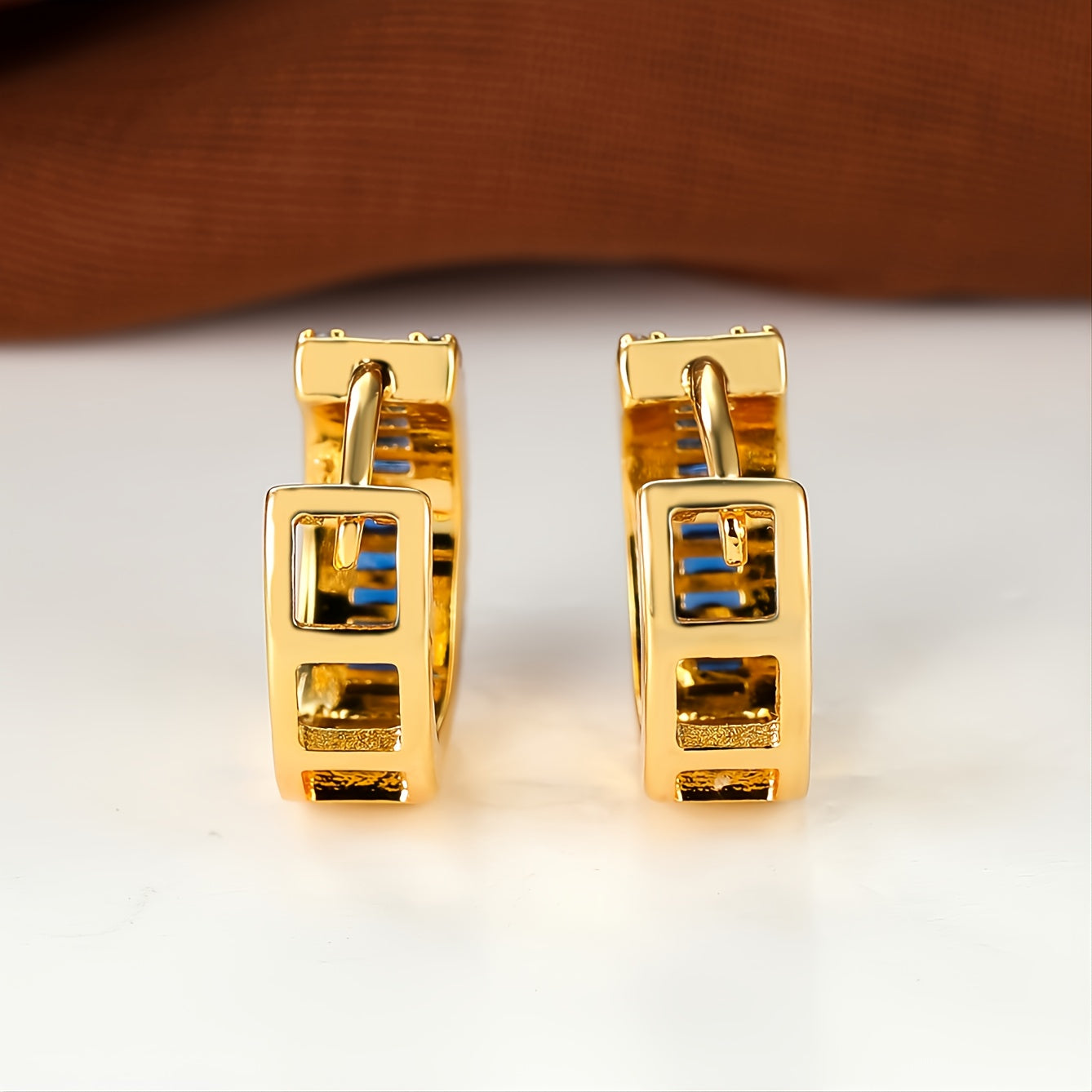 Add a touch of vintage elegance with these stunning hollow hoop earrings featuring golden sapphire square zircons. Perfect for bridal occasions!