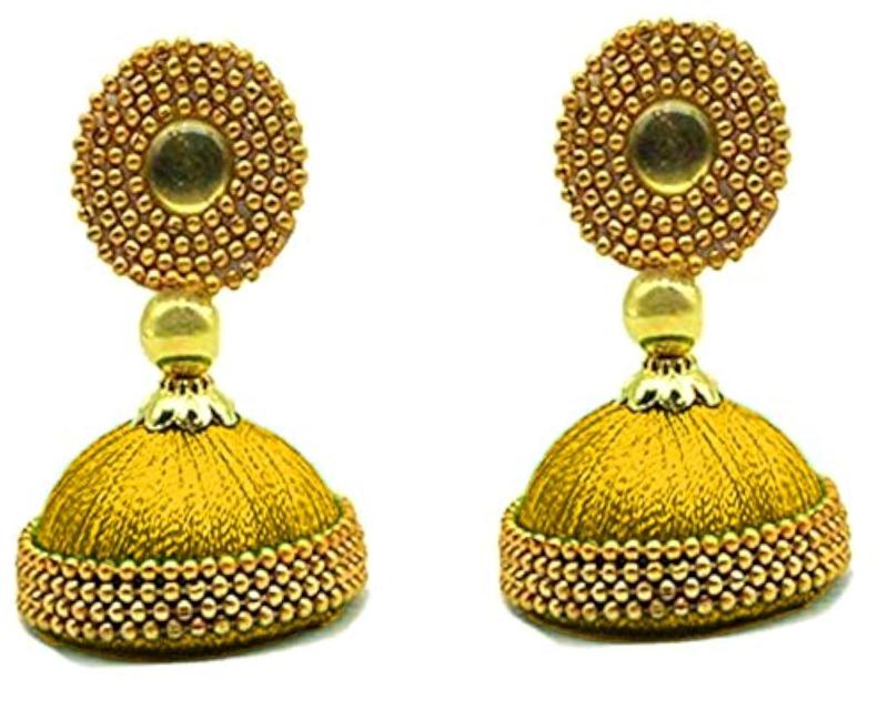 Add a touch of elegance to your ethnic wear with these stunning golden silk jhumki dori earrings available in various colors.
