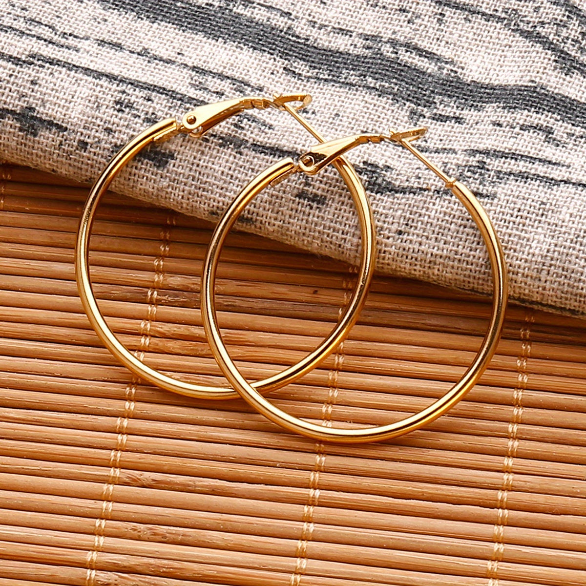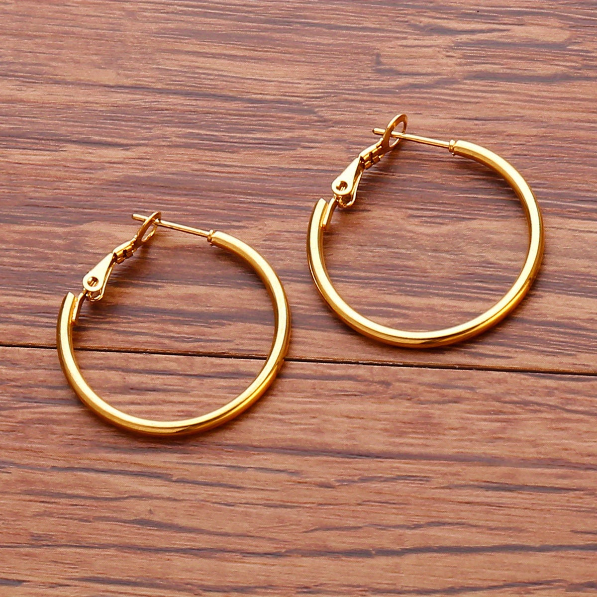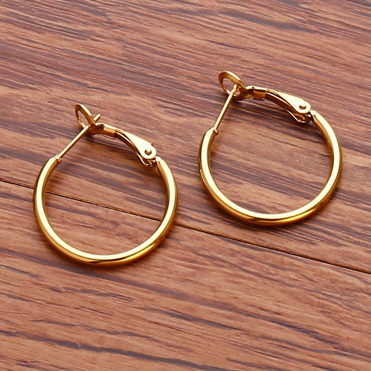 Add a touch of elegance to your casual look with these minimalist hoop earrings. Featuring a glossy finish and made of durable stainless steel with 14K gold plating, these earrings are perfect for daily wear.