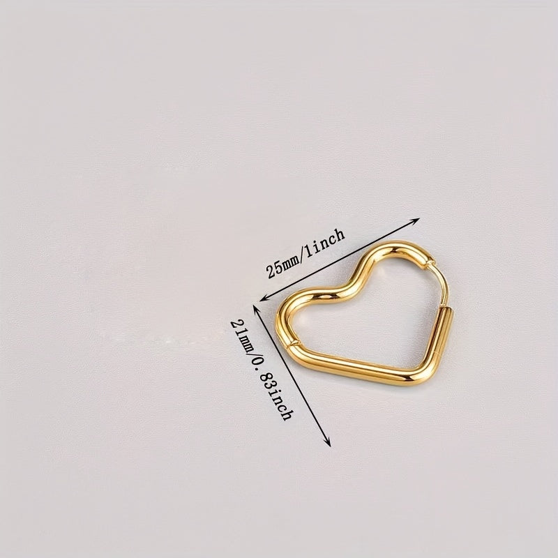 These hollow heart hoop earrings are made of stainless steel and plated with 18K gold. They make a beautiful and versatile accessory for any occasion.