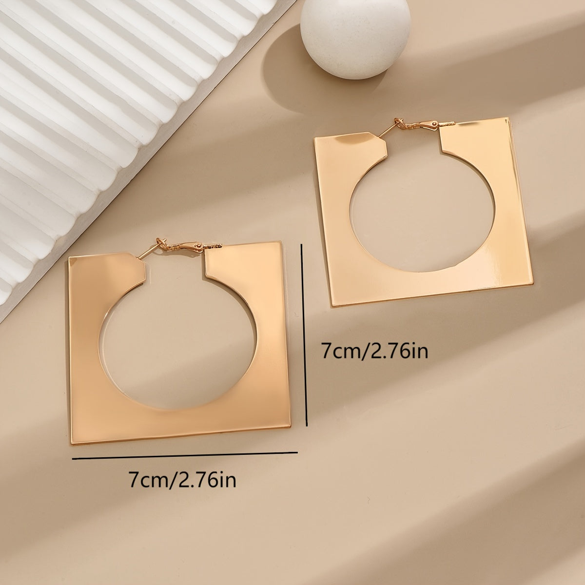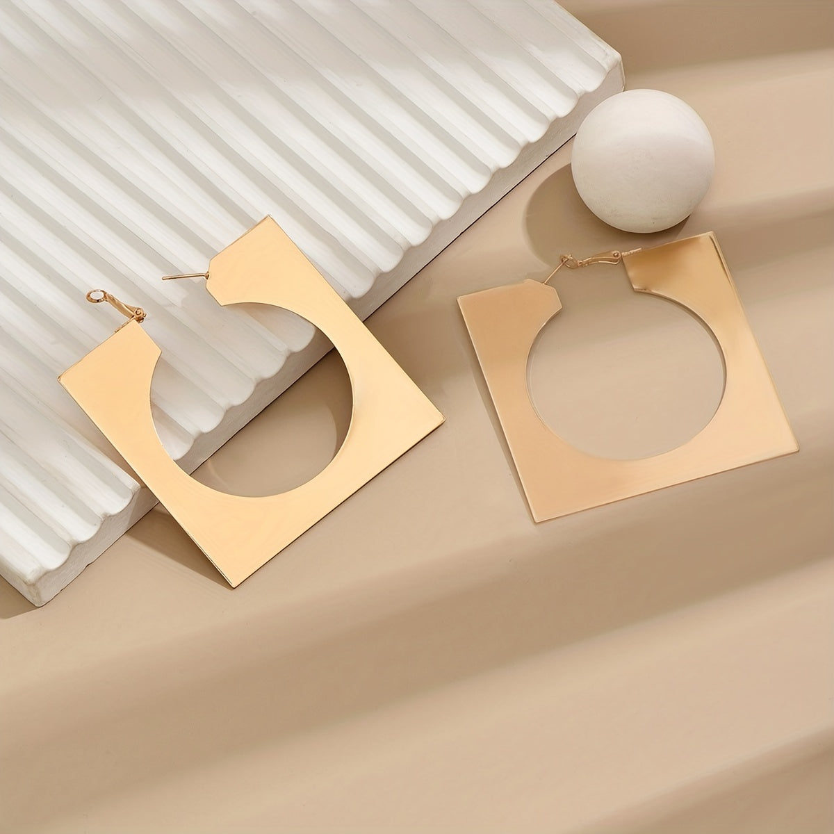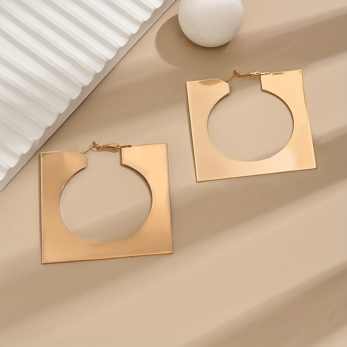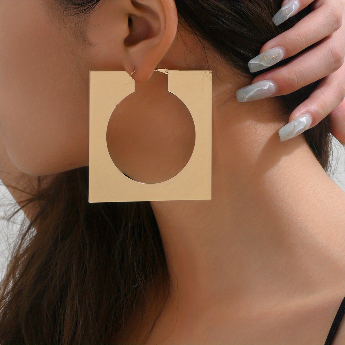 These stylish dangle earrings feature a golden square shape with a hollow round pattern design. Perfect for daily casual wear, these earrings add a touch of elegance to any outfit.