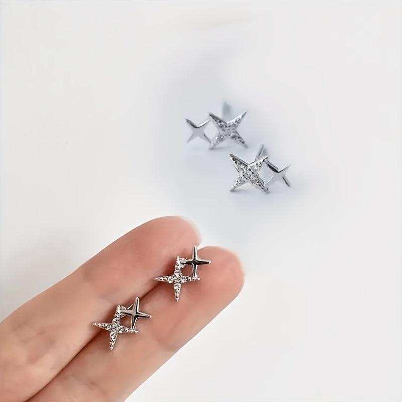 Add a touch of elegance to your outfit with these golden tone star stud earrings featuring synthetic zirconia. Made with high-quality stainless steel for durability and style.