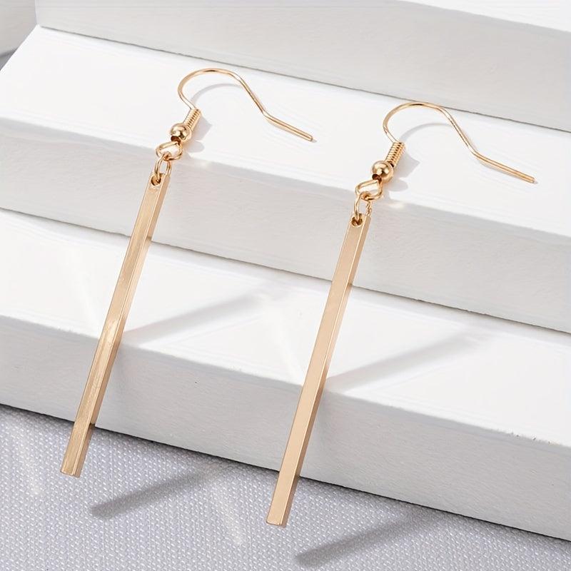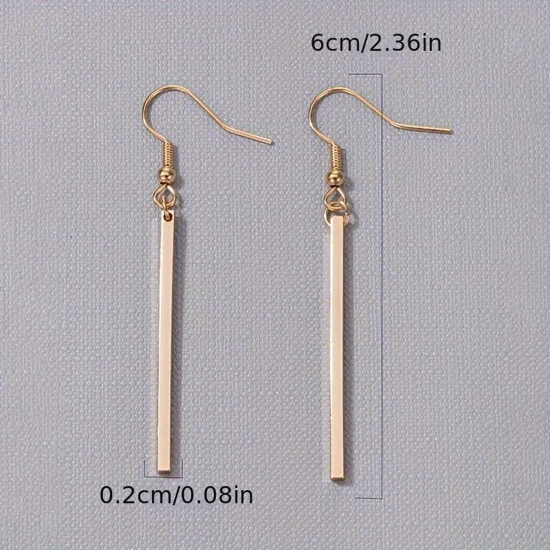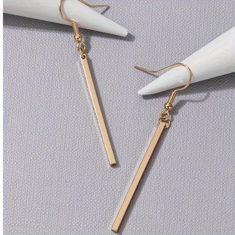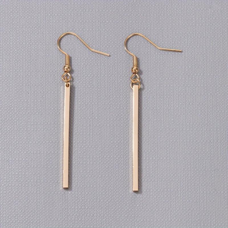 Add a touch of elegance to your outfit with these stylish golden stick dangle earrings. Made from high-quality zinc alloy, these earrings are the perfect accessory for any occasion.