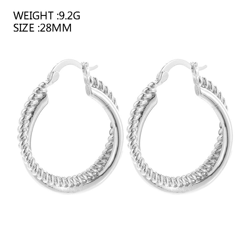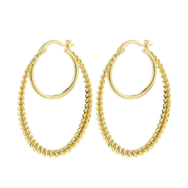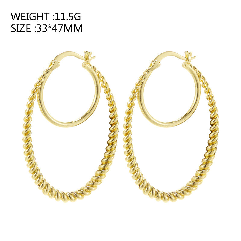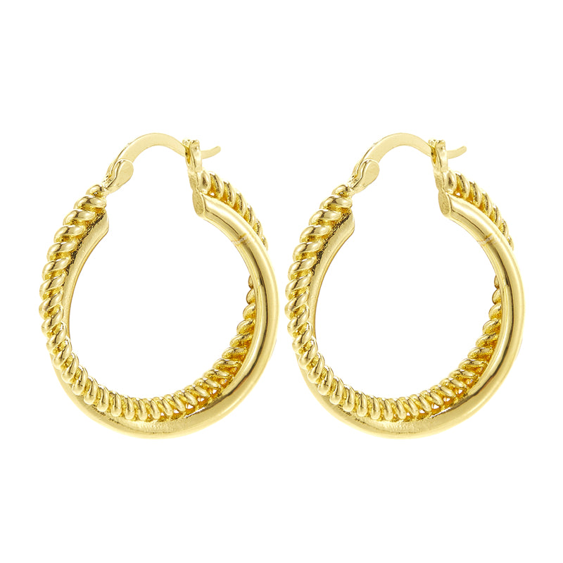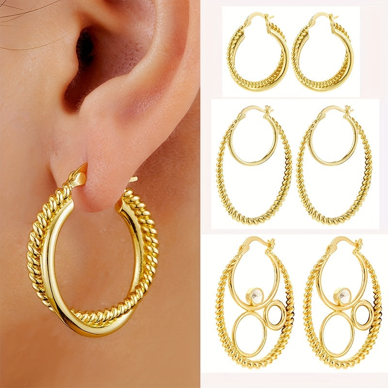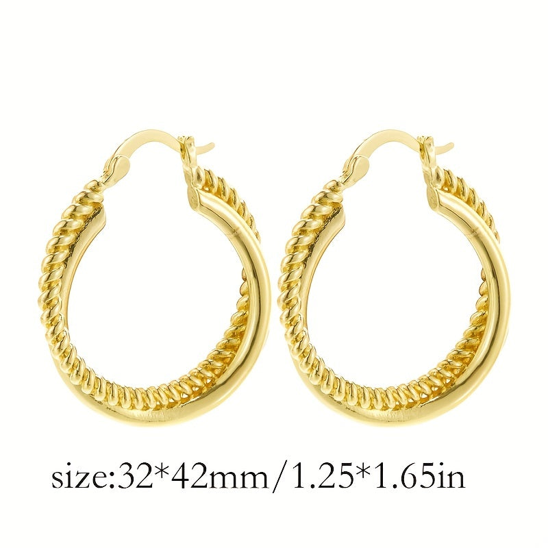 These golden twist hoop earrings are a sexy minimalist style accessory, perfect as a gift for females. Made of copper and plated with 14K gold, they add a touch of elegance to any outfit.