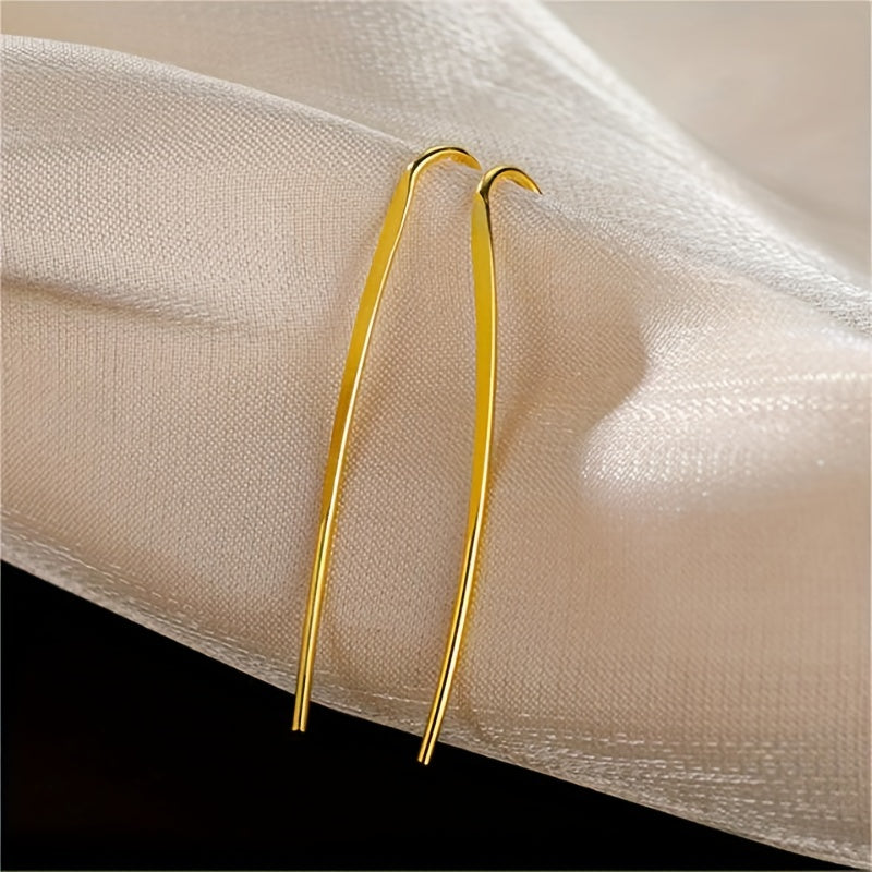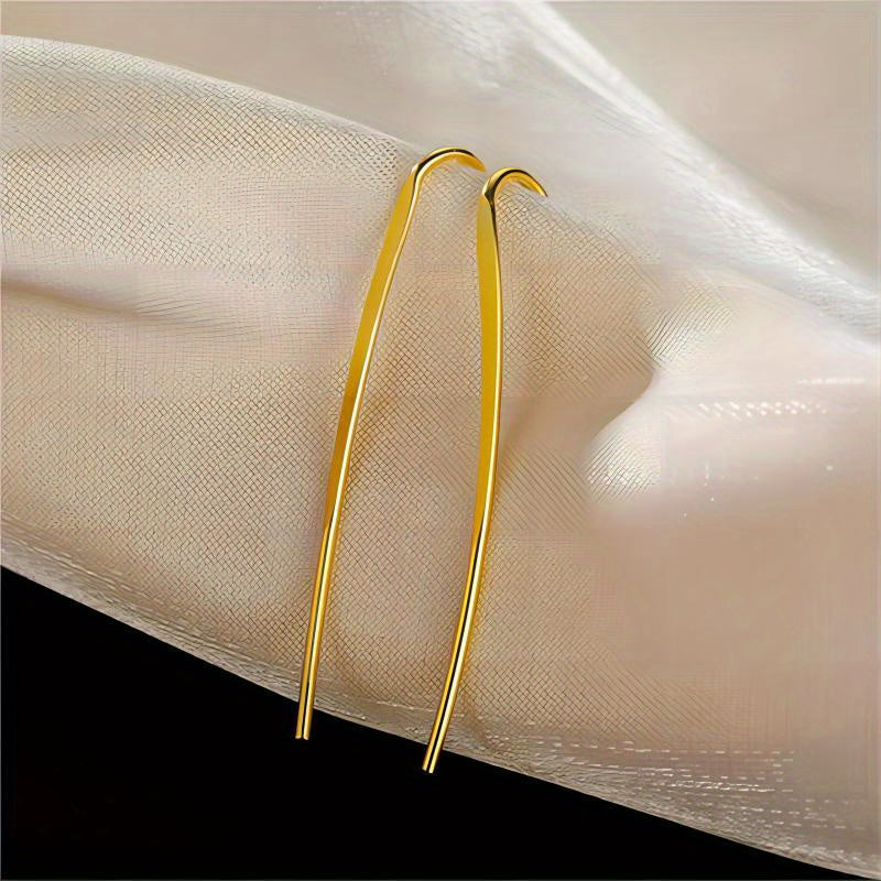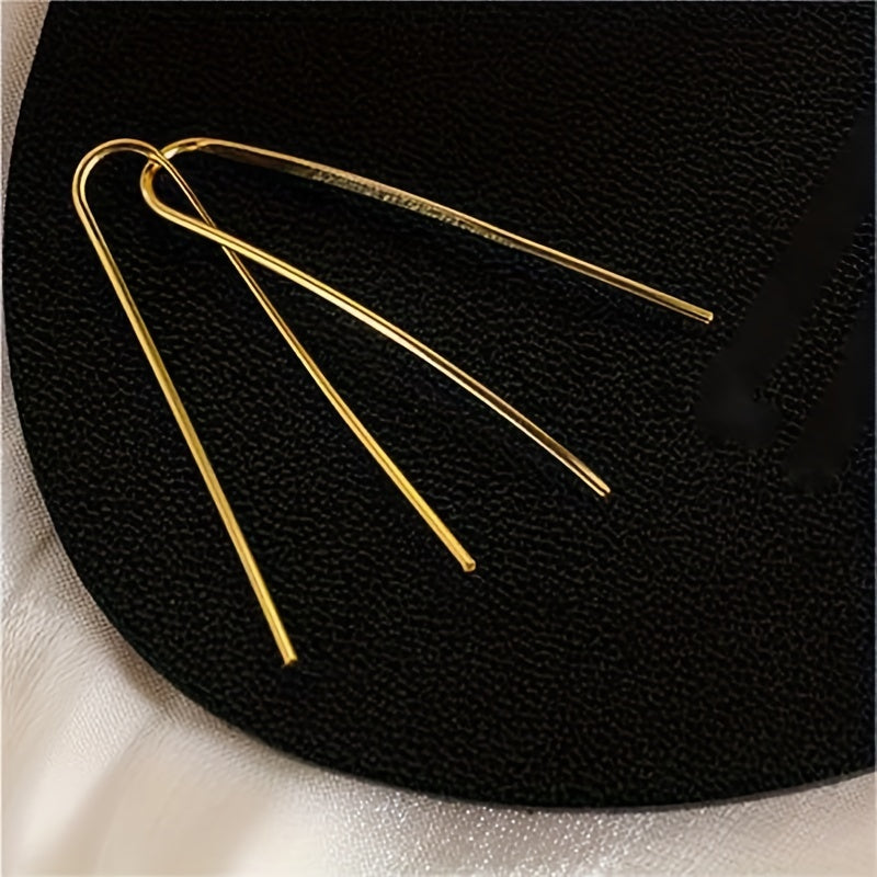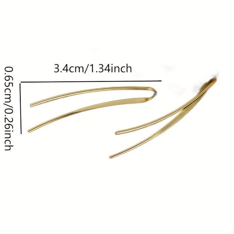 These minimalist clip-on earrings feature a delicate U shape design in a golden alloy material. Perfect for adding a touch of Japanese-inspired style to any outfit. Ideal as a gift for a fashion-forward female.