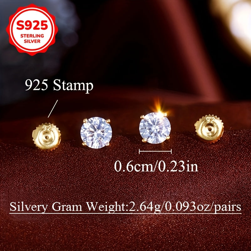 Add a touch of elegance to your look with these stunning golden yellow stud earrings. Made with hypoallergenic S925 silver, these earrings feature a 6mm broken ice round zirconia in 4 claws setting. Perfect for everyday wear.