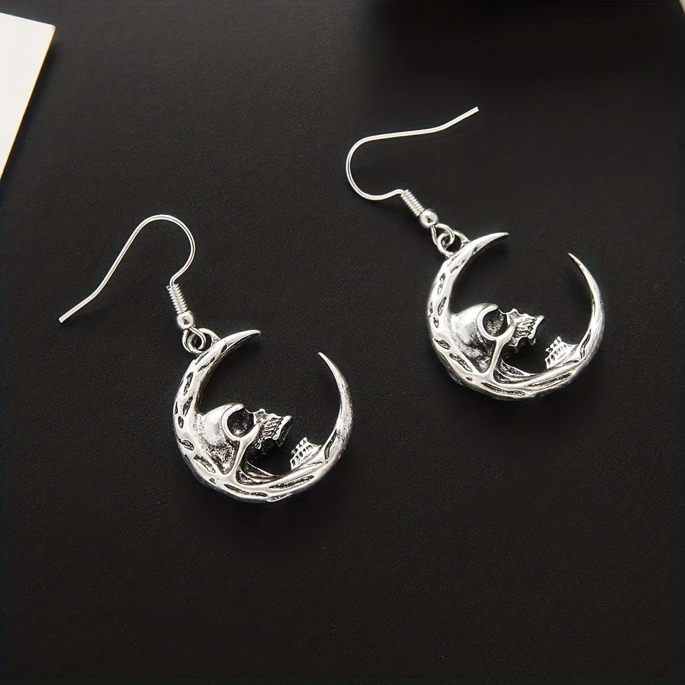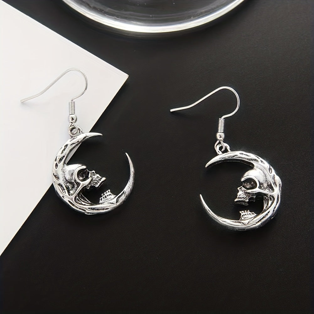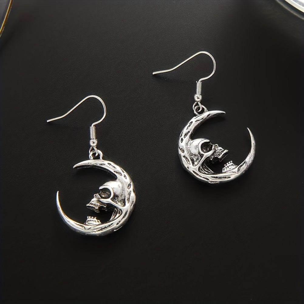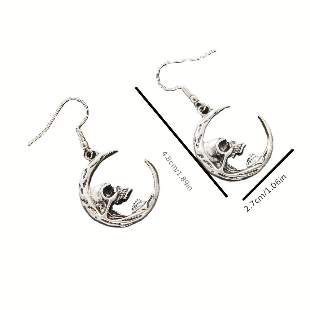 Add a touch of gothic style with these dark skull earrings featuring a retro crescent design.
