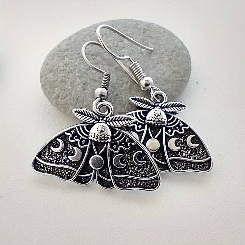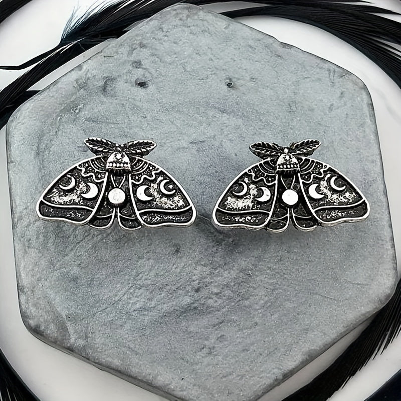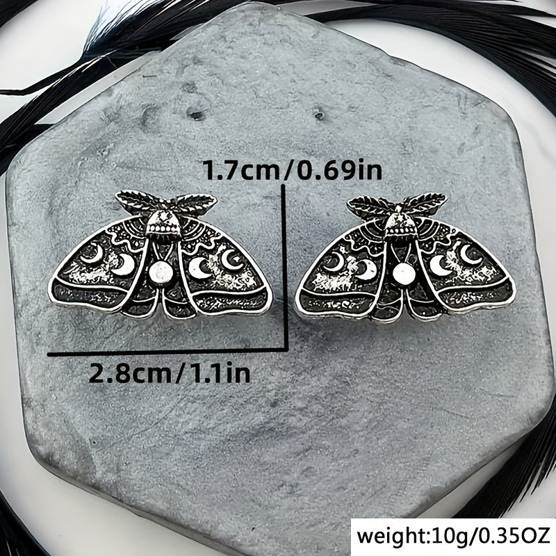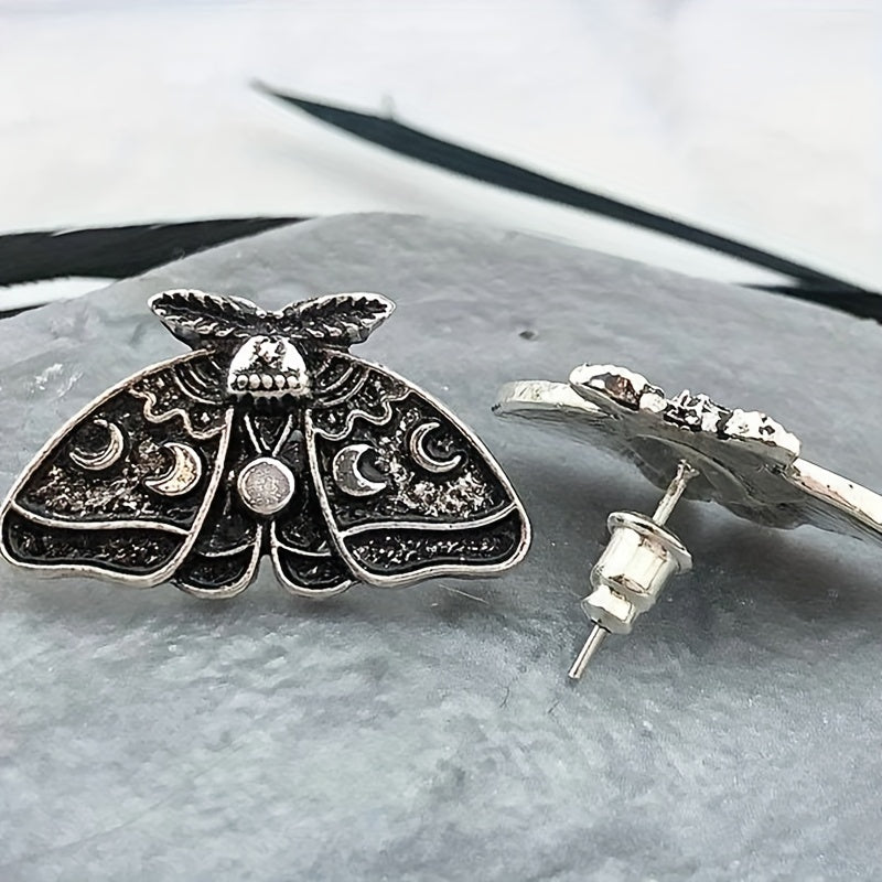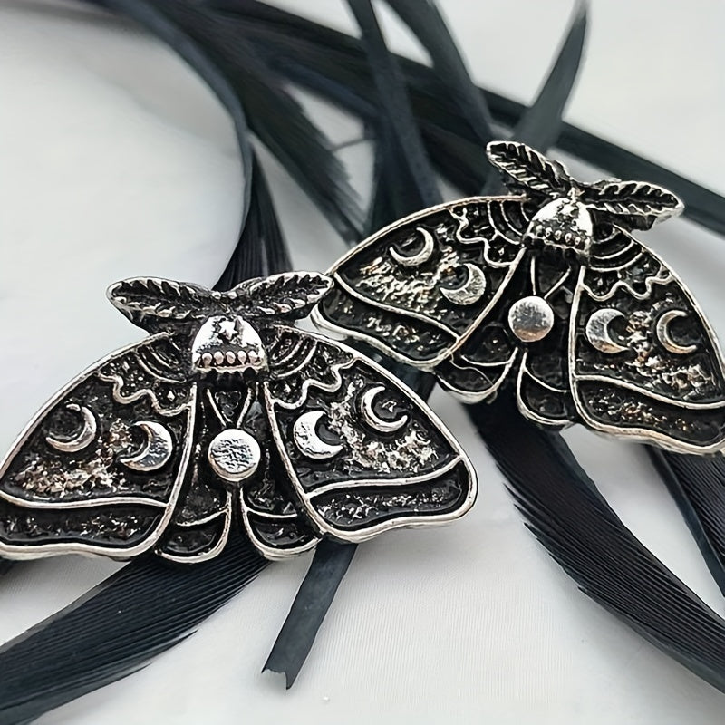Add a touch of retro gothic style with these moth pattern earrings designed for men. Perfect ear jewelry to make a statement.