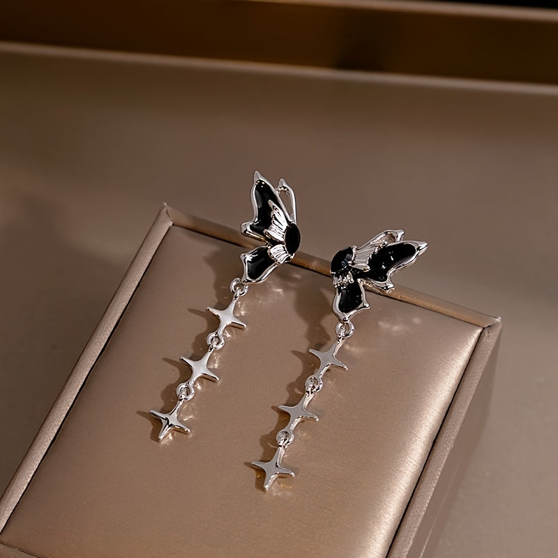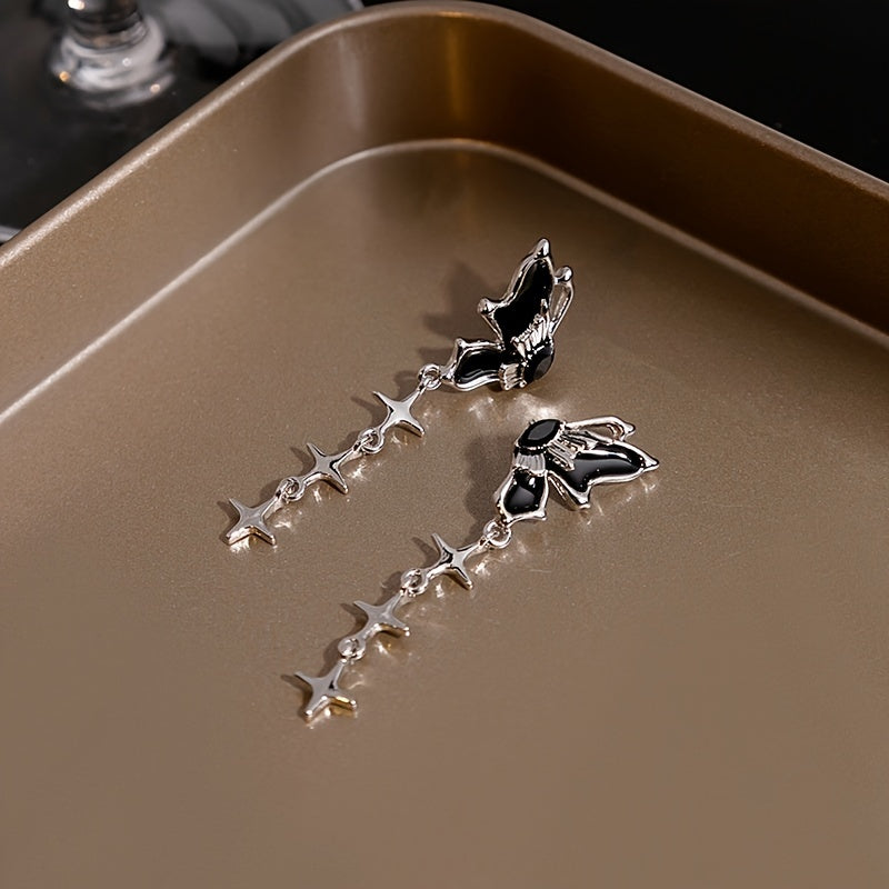 These unique long earrings feature a gothic punk design with butterfly details, making them a perfect gift for women and girls who love edgy accessories.