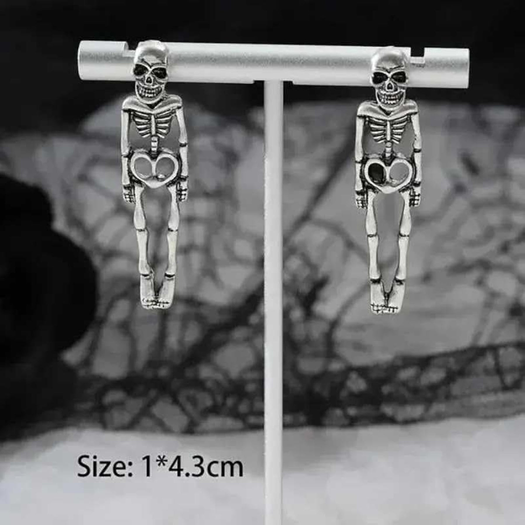 Make a spooky statement with these Gothic Skeleton Skull Dangle Drop Earrings, perfect for Halloween or any occasion with an occult vibe.