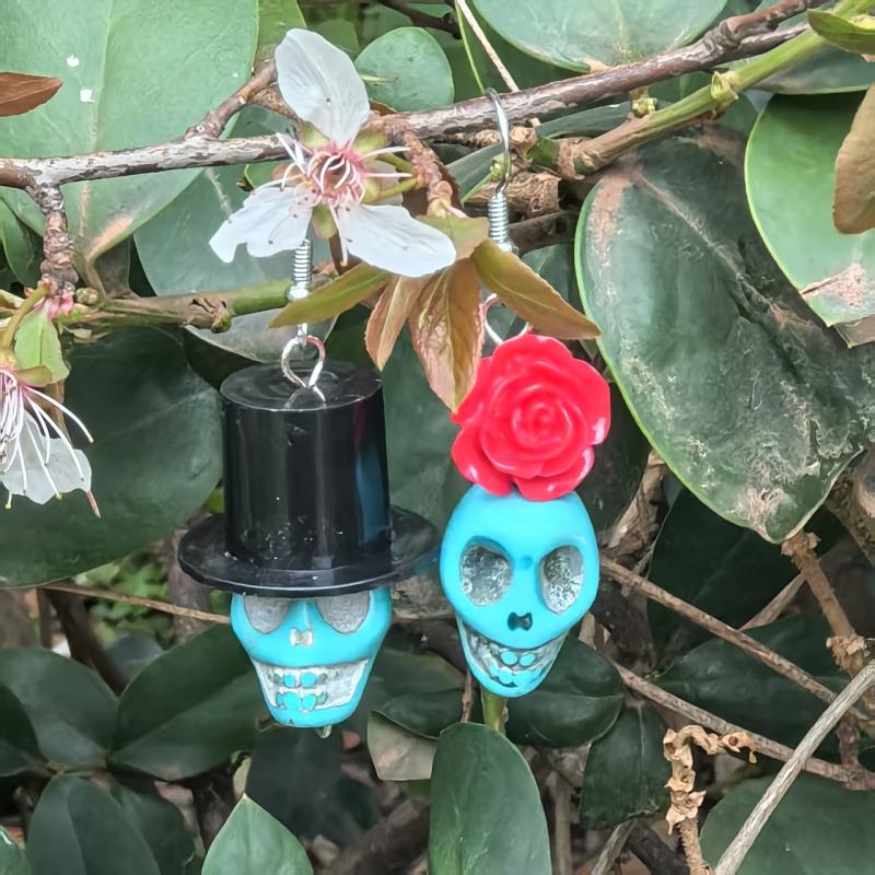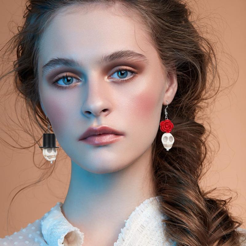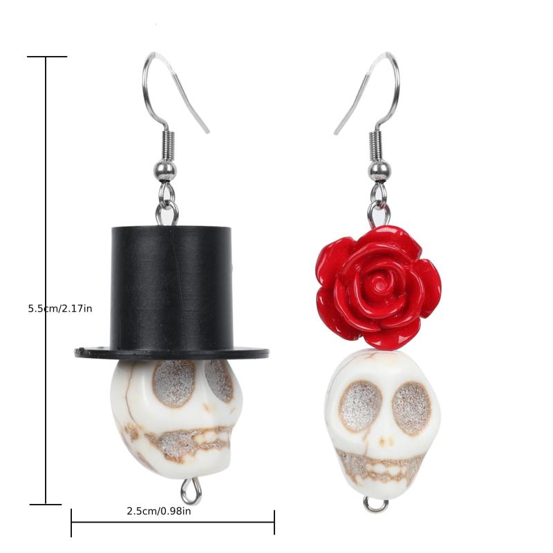 Embrace a spooky yet stylish look with these Gothic Skull & Rose Earrings. Made from resin with iron hooks, they are perfect for daily wear and vacation outfits.