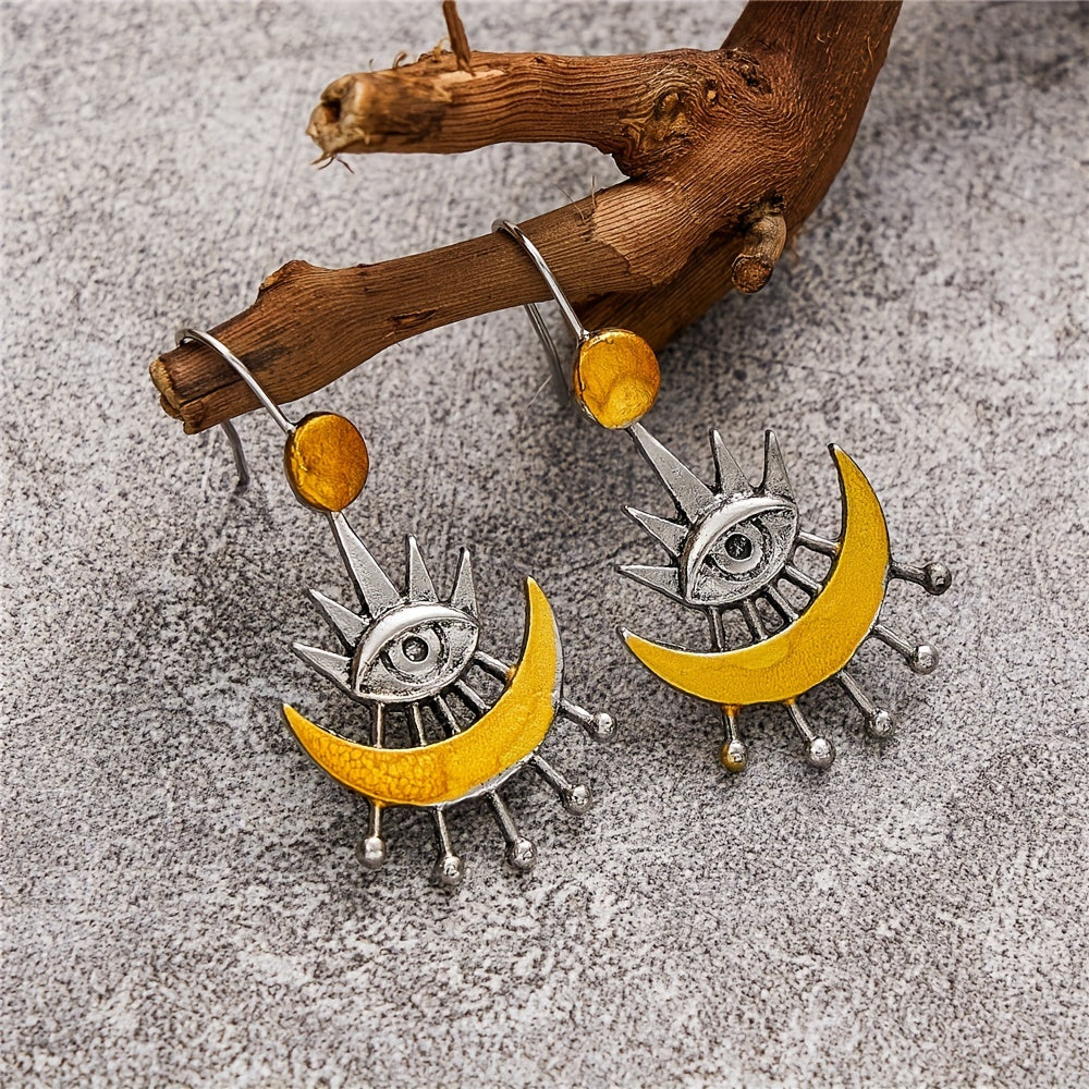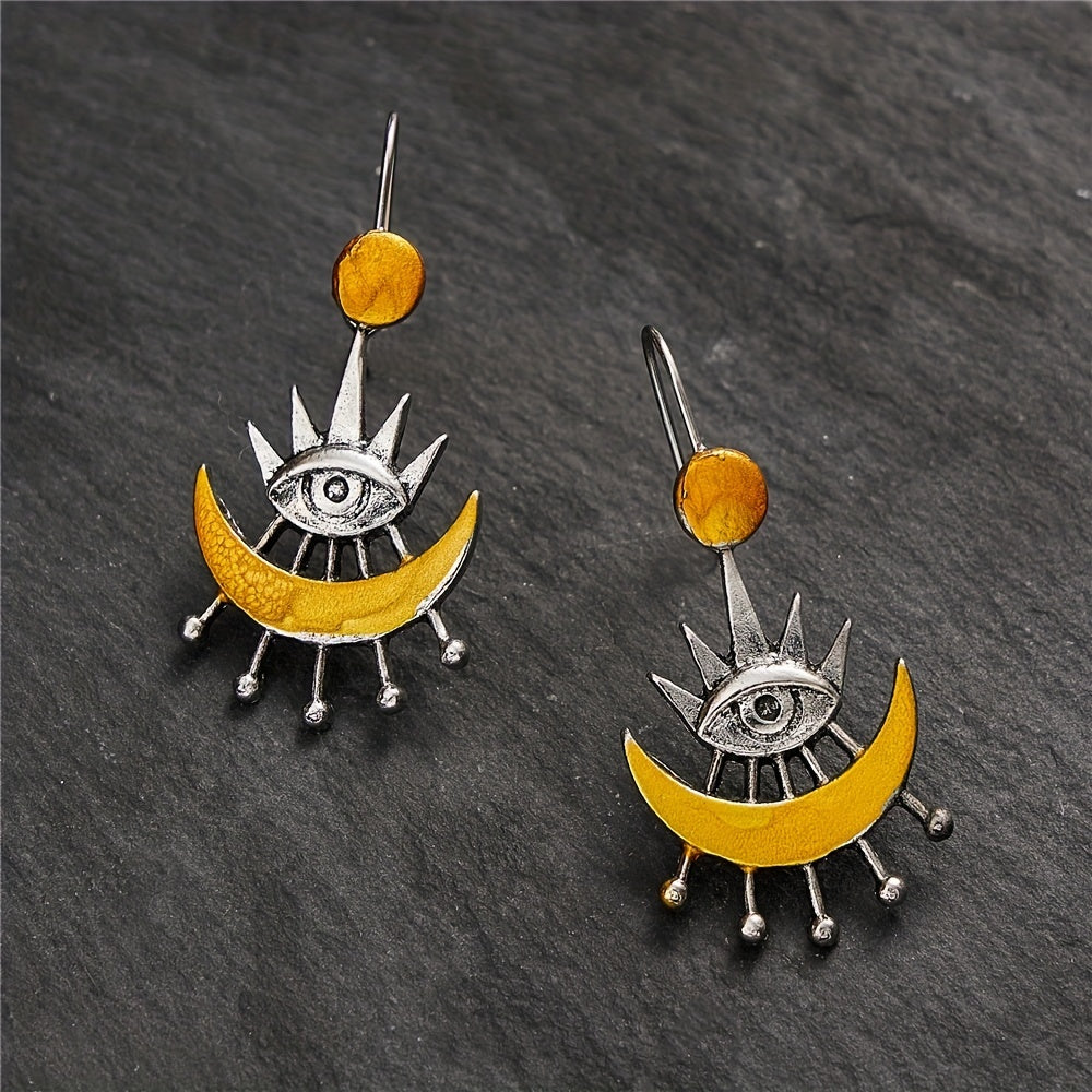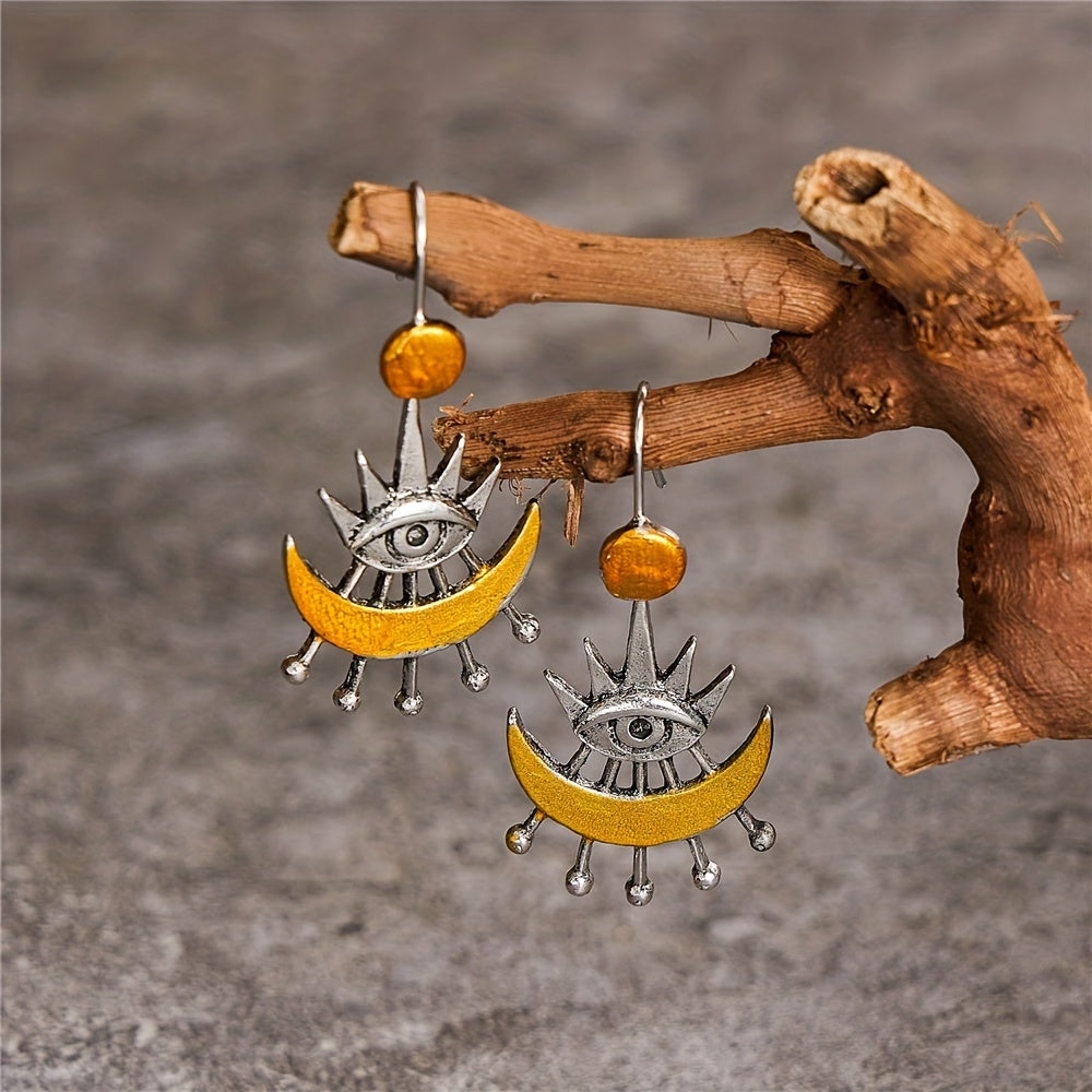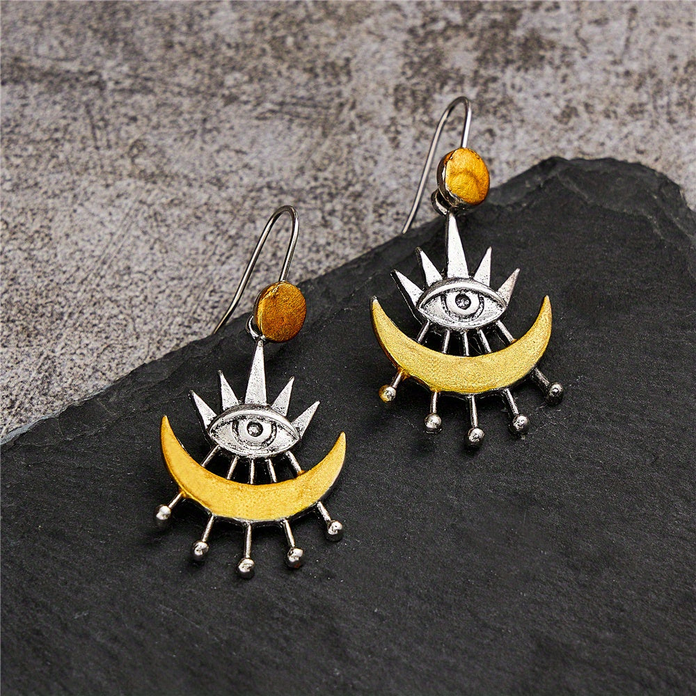 These earrings are perfect for adding a touch of gothic vintage style to your look. The eye and moon pattern design creates a mystical aesthetic. Ideal for holiday wear.
