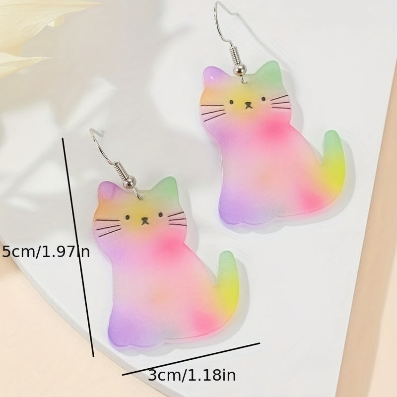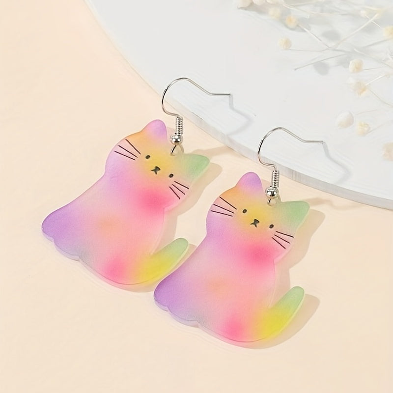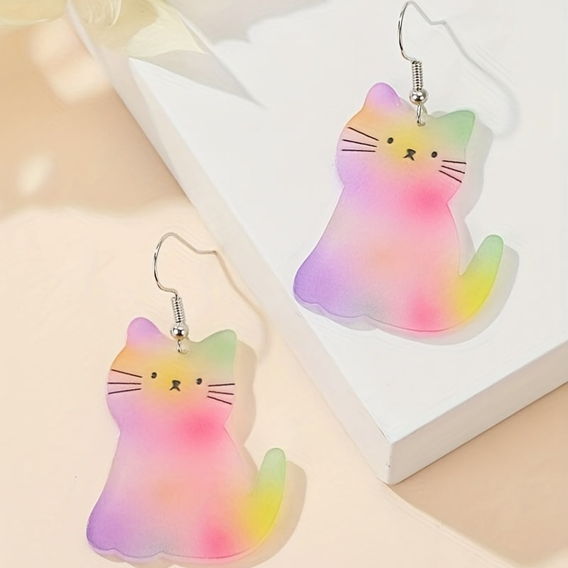 These adorable gradient cat resinous hook earrings are perfect for women and girls to wear daily for a casual look.