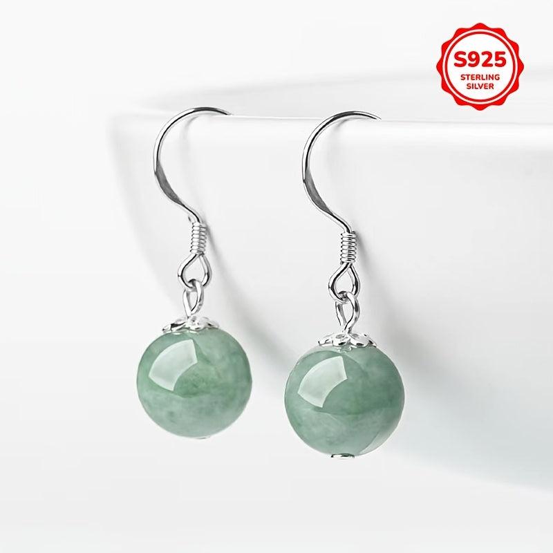 Elevate your style with these green round bead drop earrings crafted from 2.6g of S925 silver and set with imitation jade. Perfect for everyday wear and gifting.