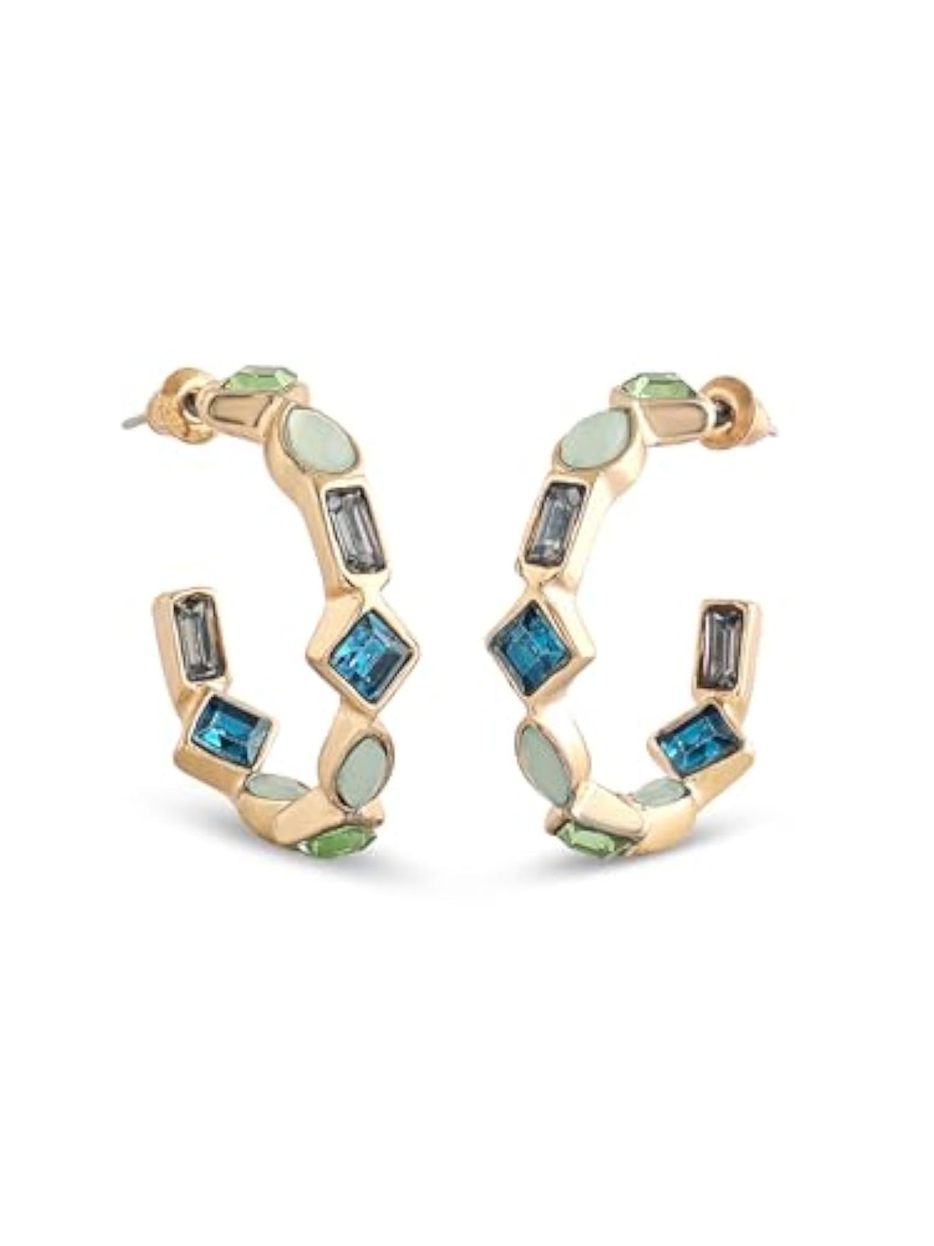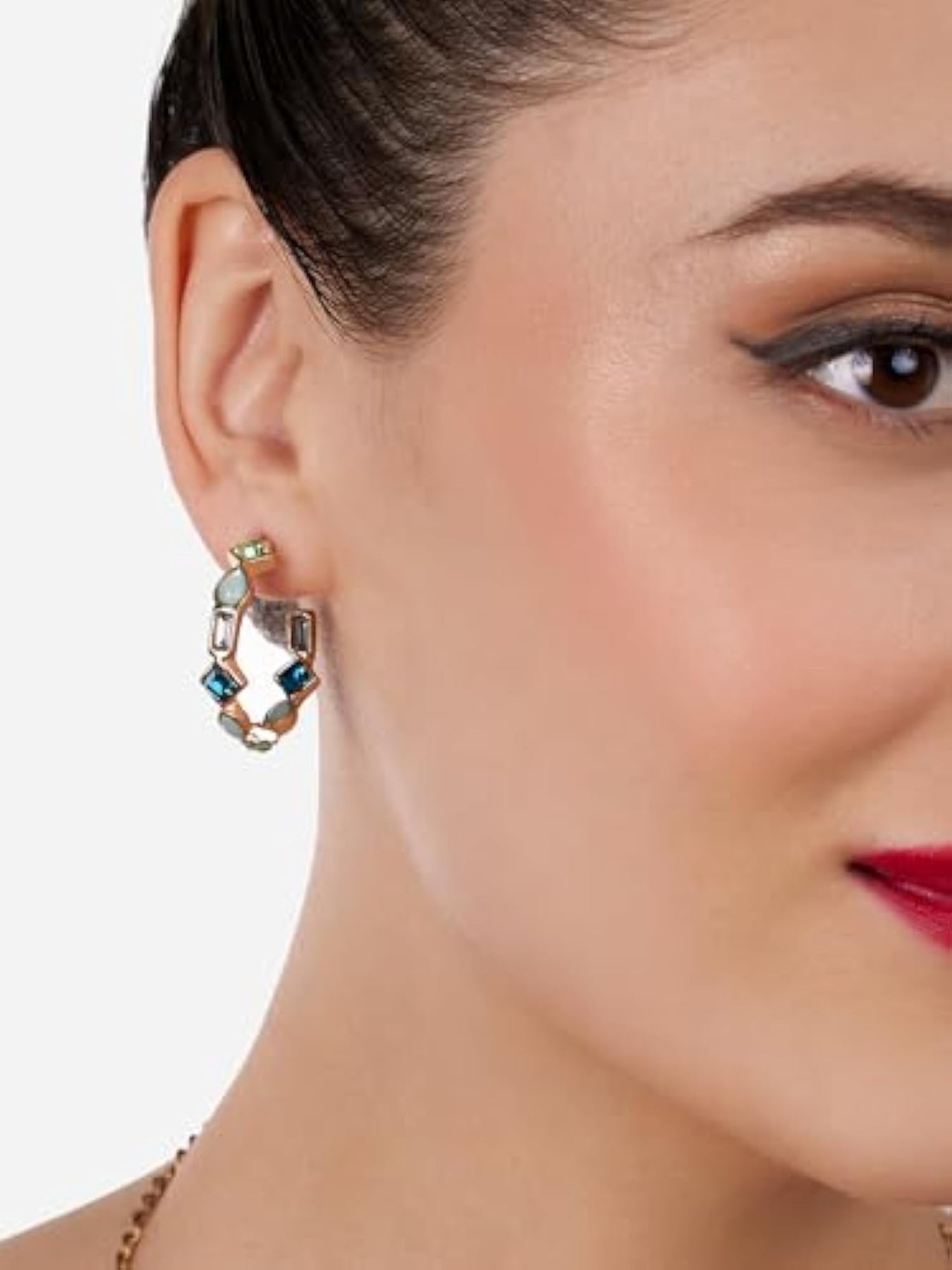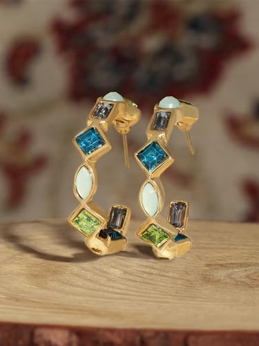 Elevate your style with these contemporary semi hoop studs earrings embellished with green dazzling stones. Perfect for adding a touch of glamour to any outfit.