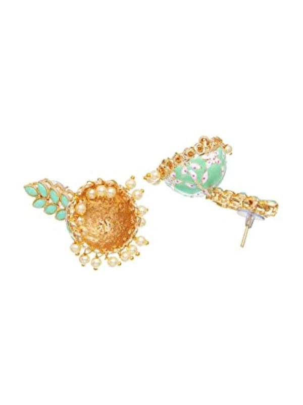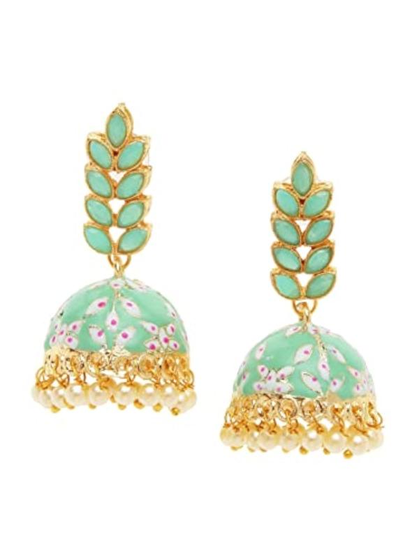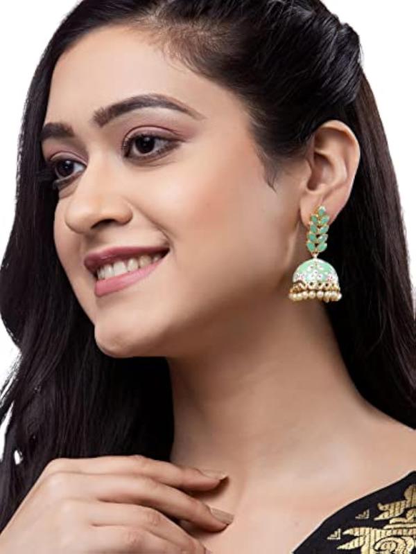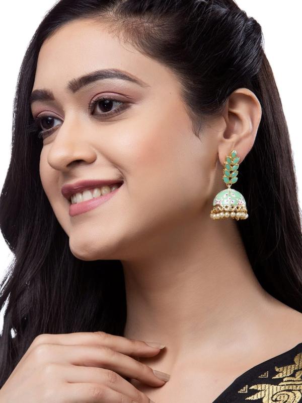 Add a touch of elegance with these dome-shaped jhumkas in stunning green color.