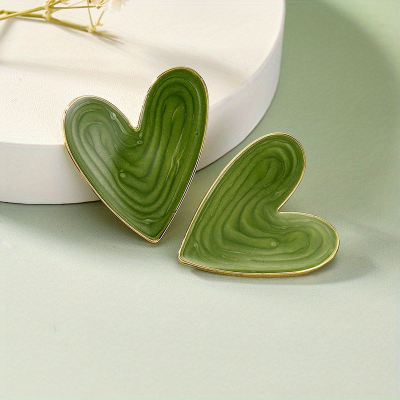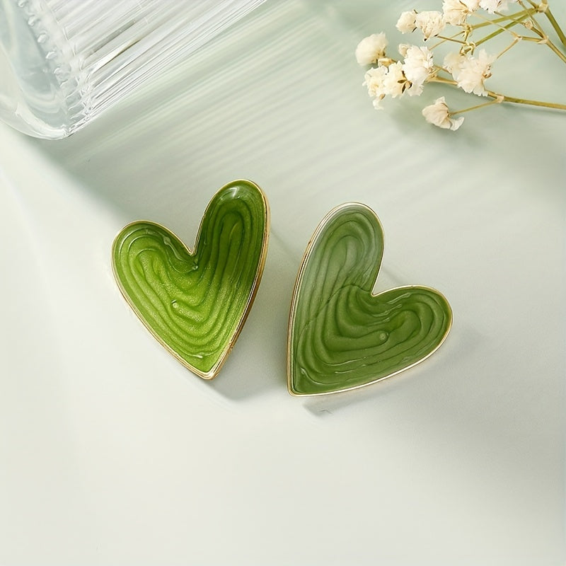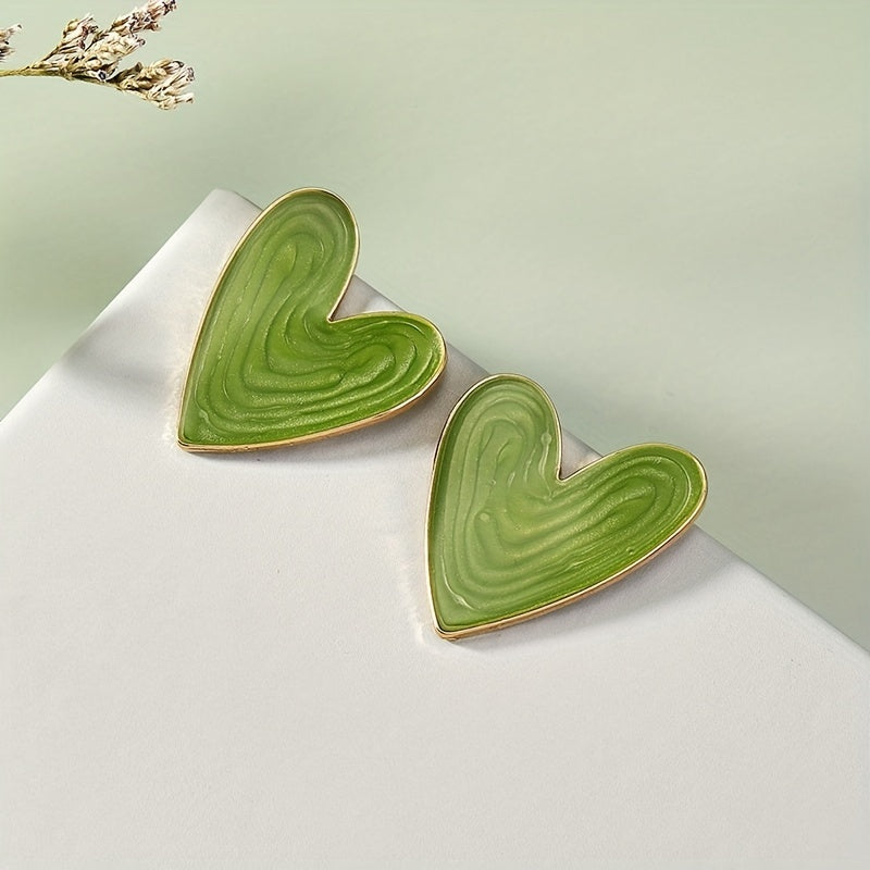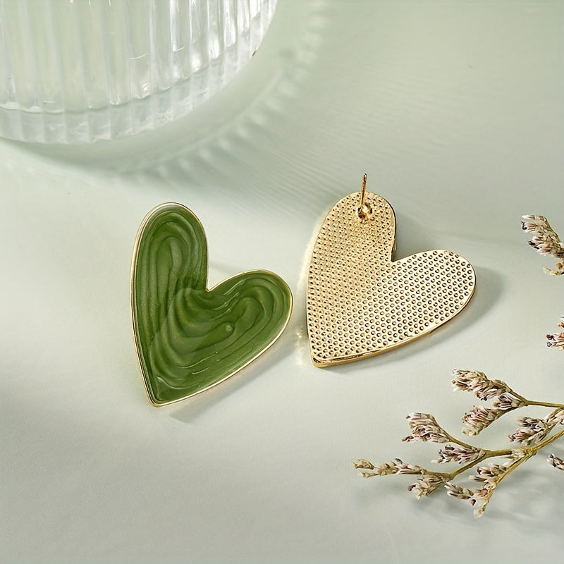 Add a touch of glamour to your look with these green heart enamel stud earrings. Perfect for daily casual wear, these earrings are made of zinc alloy with a 14K gold plating.