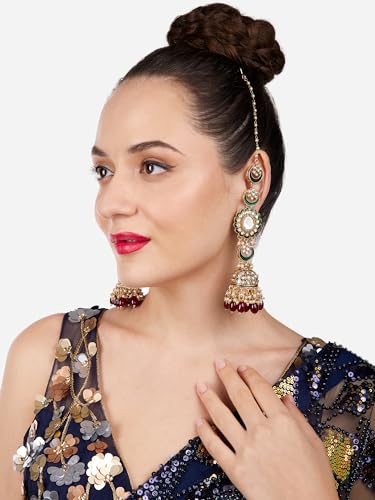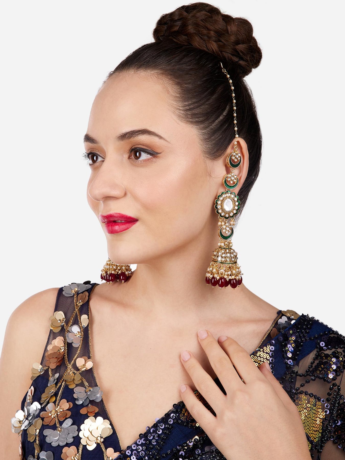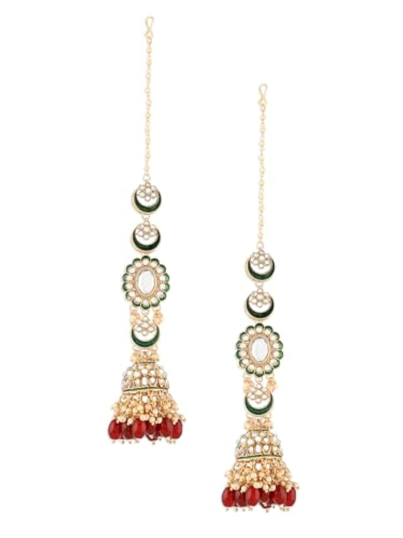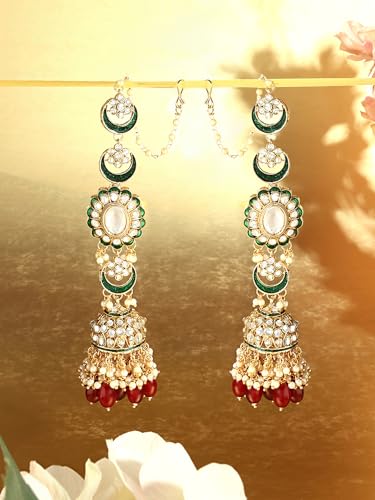 Add a touch of elegance to your outfit with these green Kundan jhumka earrings. Perfect for special occasions or daily wear.