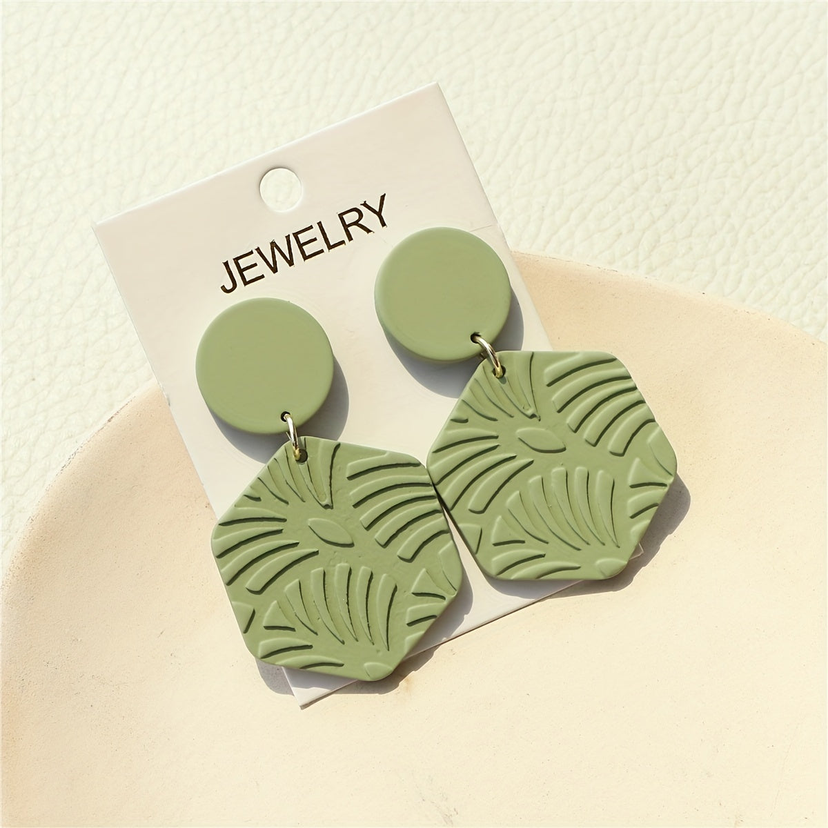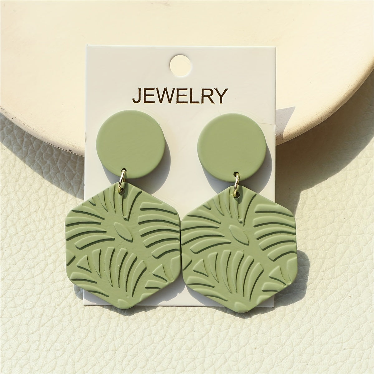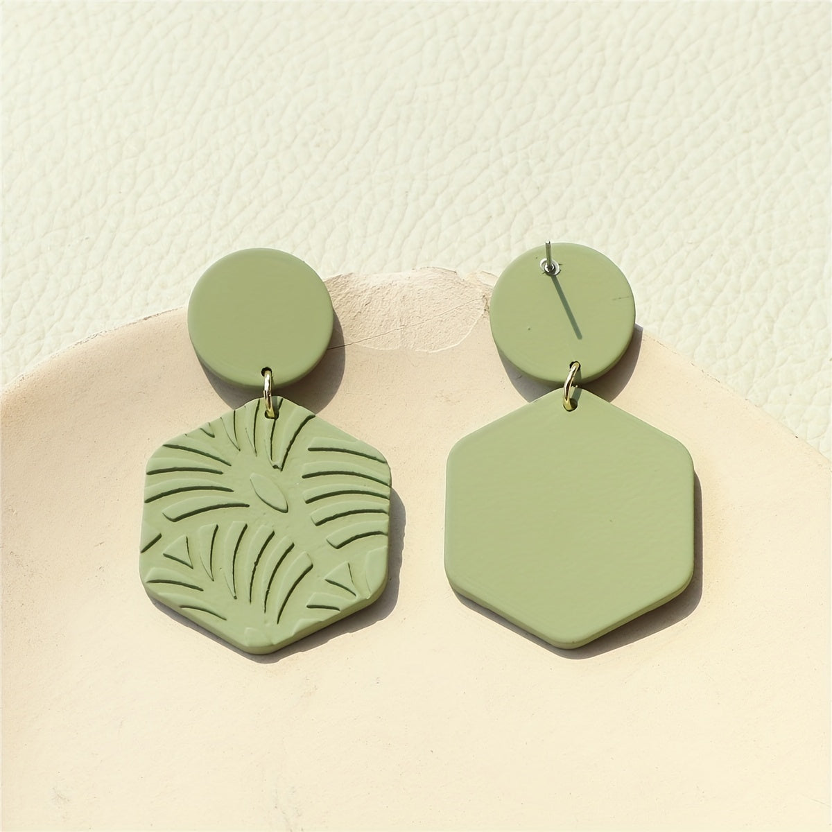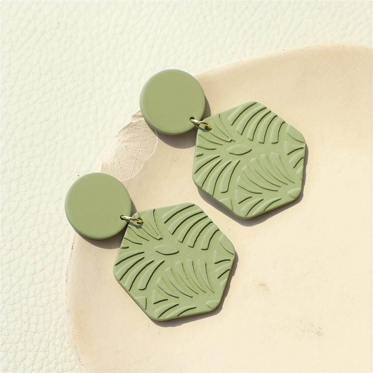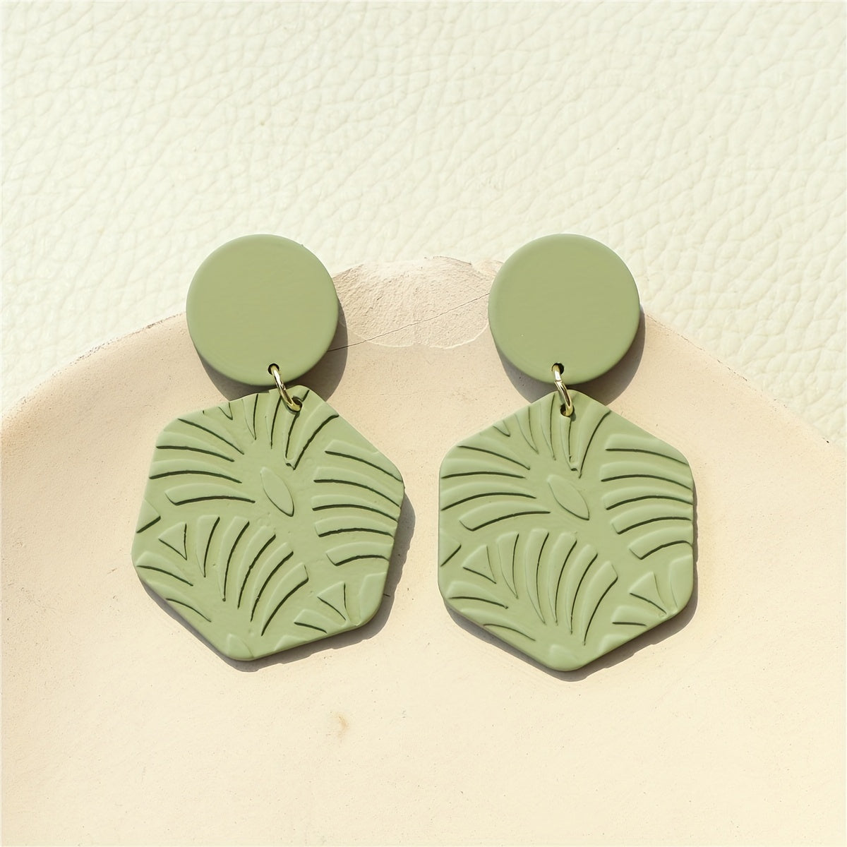 These retro boho style dangle earrings feature a green leaf pattern design, made from acrylic material. Add a touch of nature-inspired charm to your outfit with these unique earrings.
