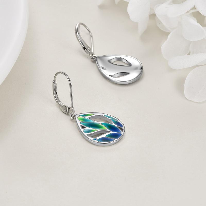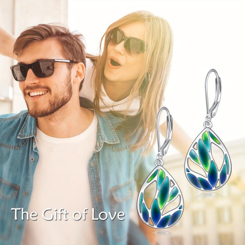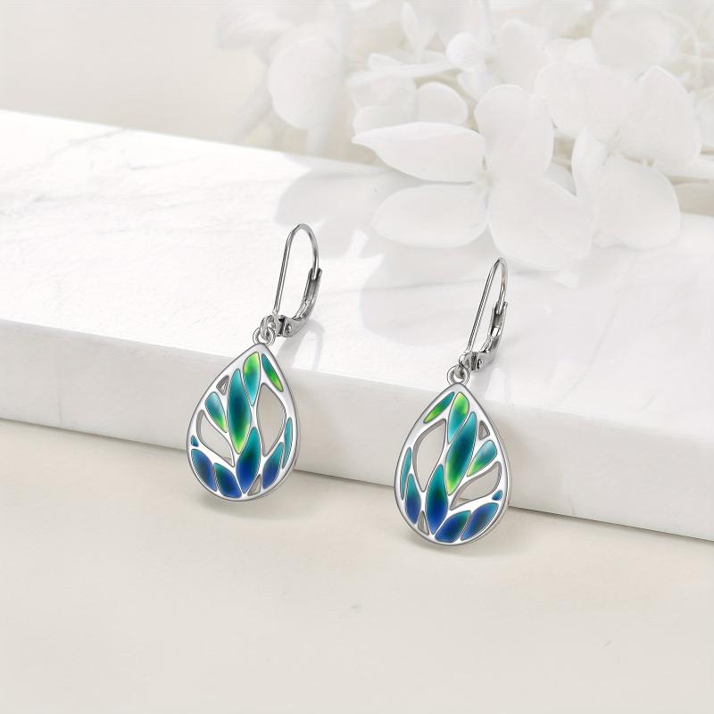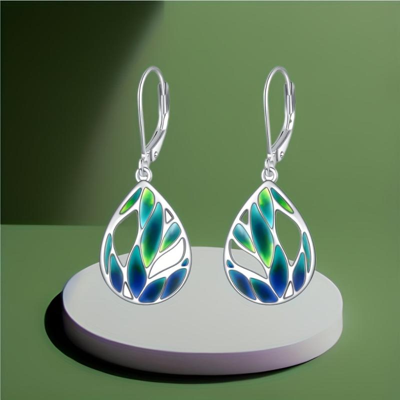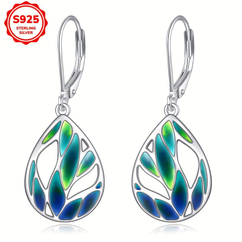 Beautiful green leaf design earrings made of S925 pure silver, perfect for nature lovers.