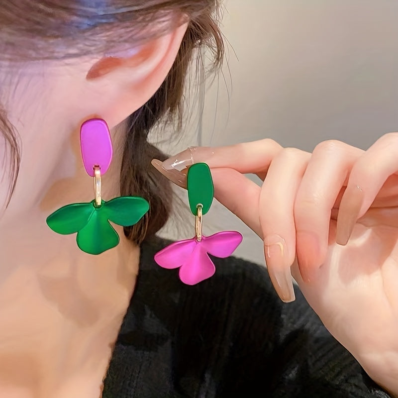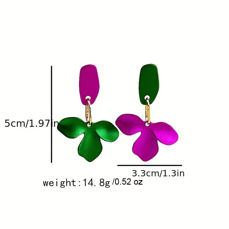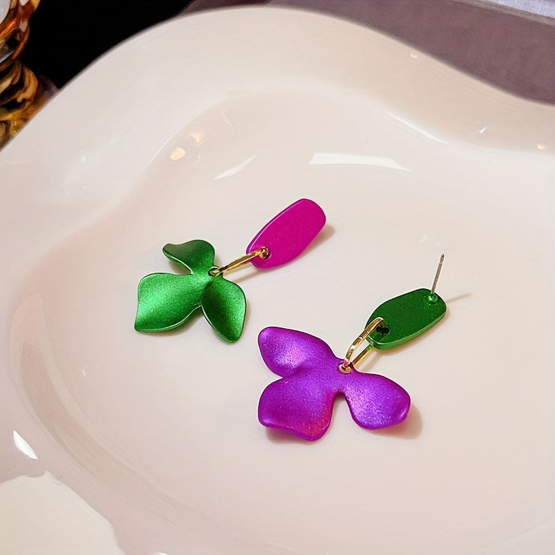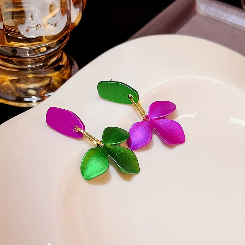 Green & Purple Flower Earrings Silver Needle Punk Style