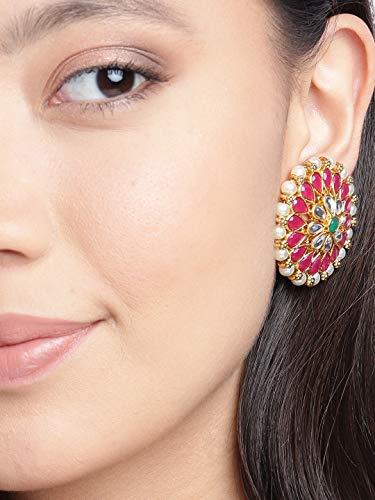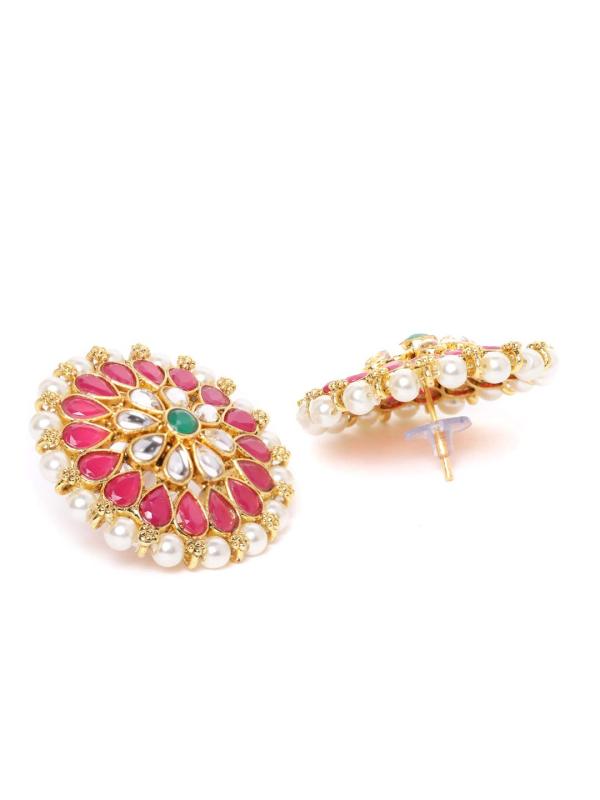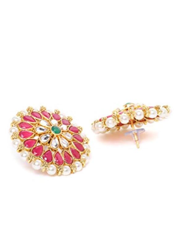 Elegant stud earrings featuring green stones and metal flower design. Perfect for women who appreciate traditional and stylish accessories.