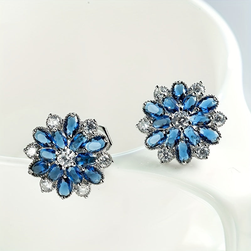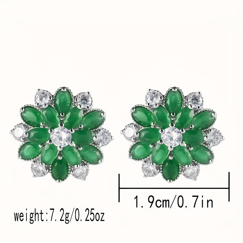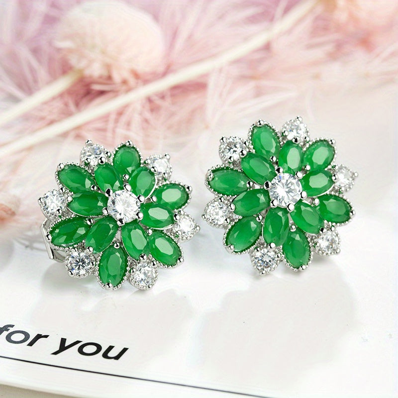 These elegant clip-on earrings feature green zircon decoration on a flower design. Suitable for minimalist style lovers, these earrings are made of copper with silver plating. Ideal gift for females.