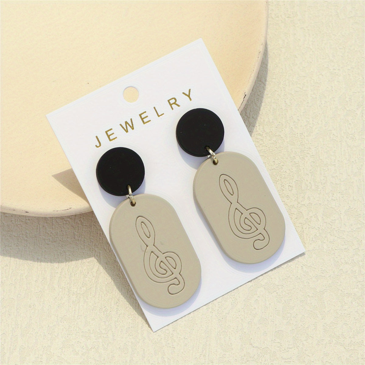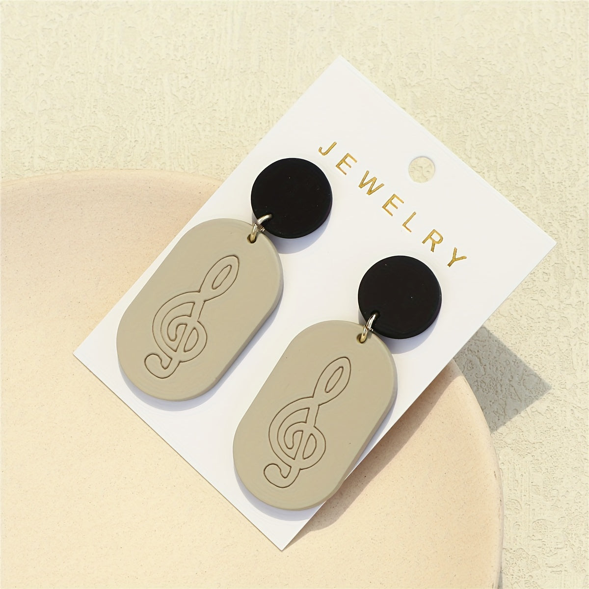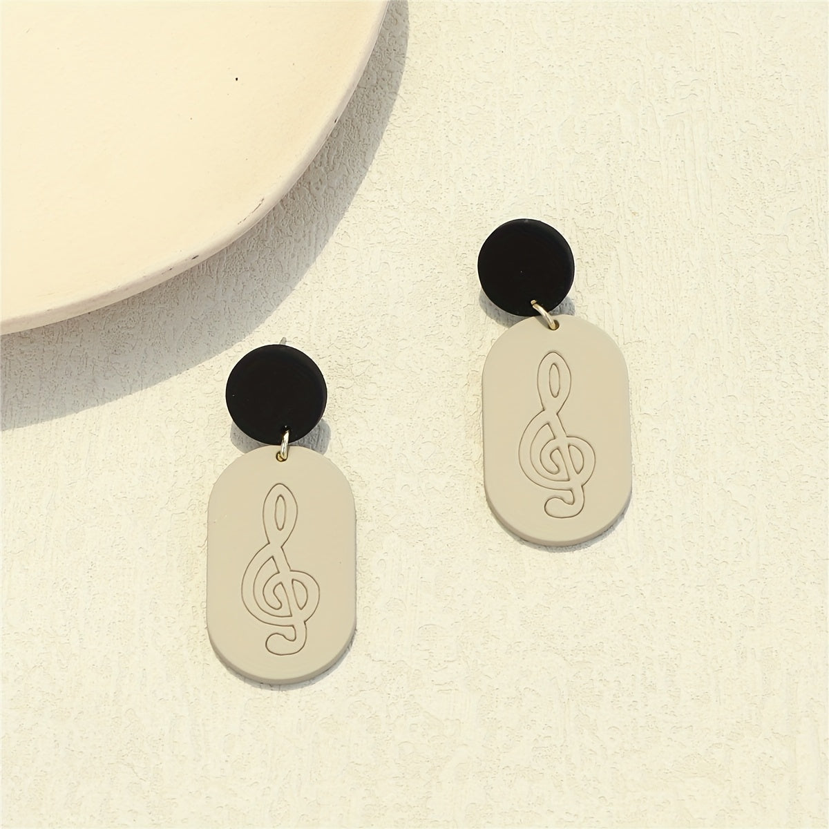 These delicate dangle earrings feature a stylish grey music symbol pattern, making them a perfect gift for music lovers. The acrylic material adds a modern touch to the design.