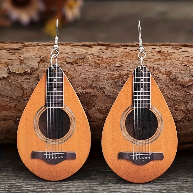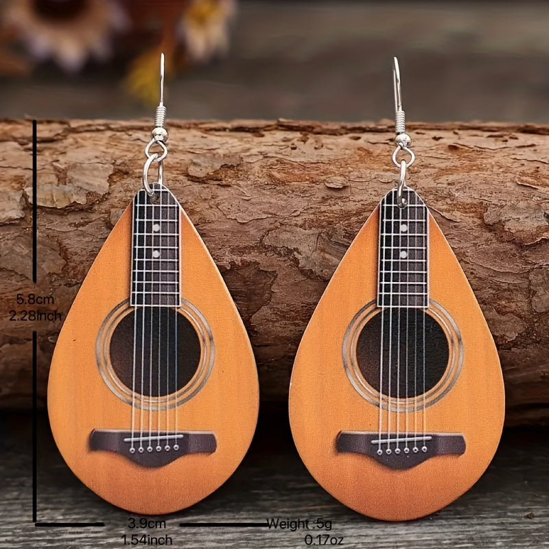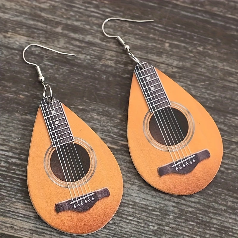 Elevate your style with these teardrop-shaped earrings made of guitar PU leather. Perfect for parties or as a unique gift for men.