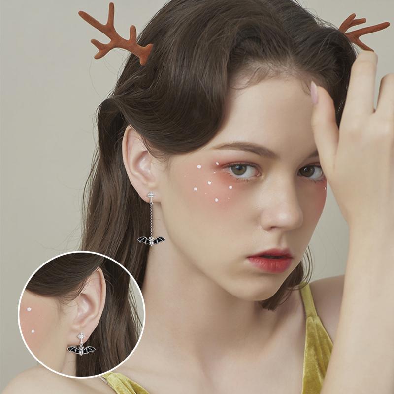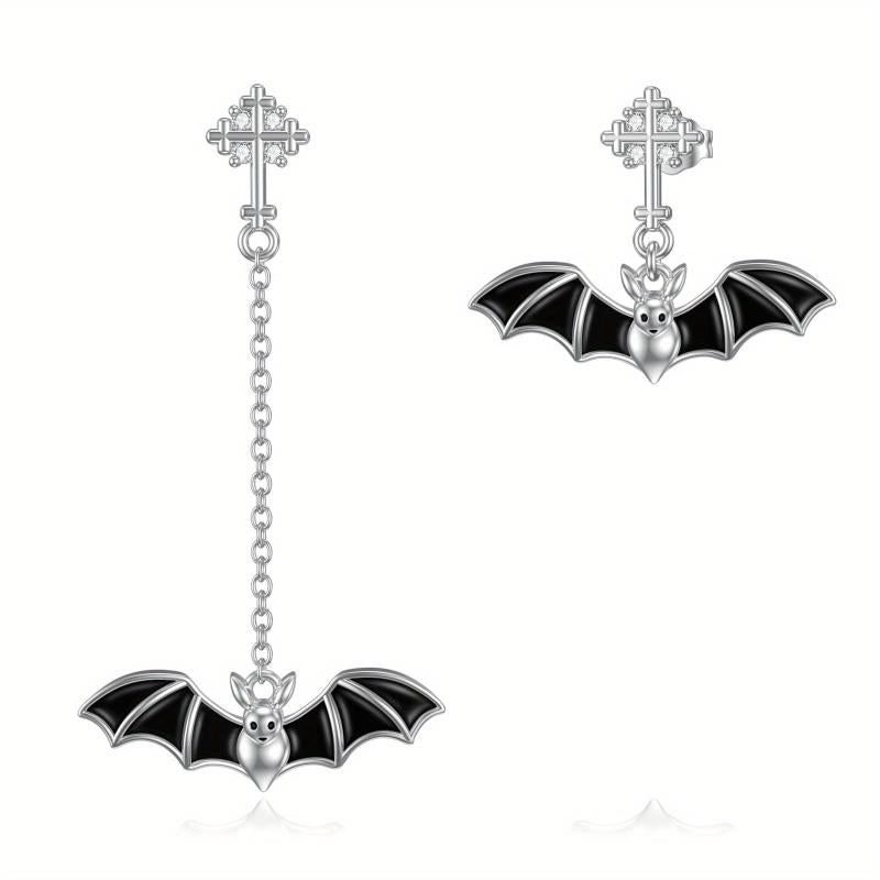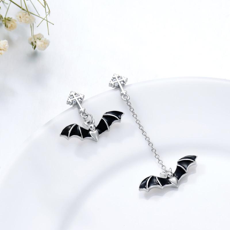 These spooky Halloween earrings feature bats in an asymmetrical design. Made of high-quality 925 sterling silver, these dangle earrings are perfect for adding a touch of Halloween spirit to your outfit.