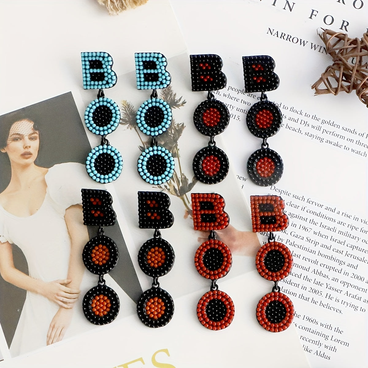 Add a spooky touch to your Halloween outfit with these BOO rice beads earrings. Perfect for vocation parties or as a unique gift for a female friend.
