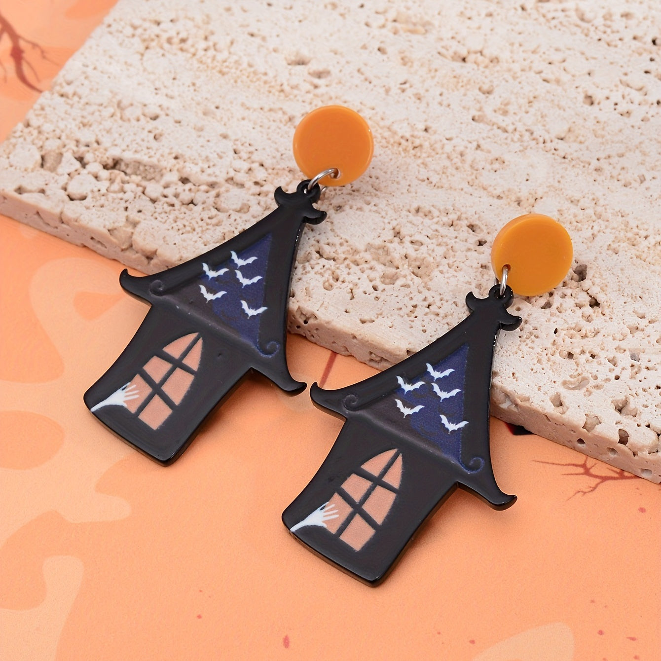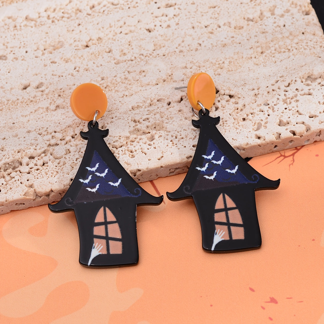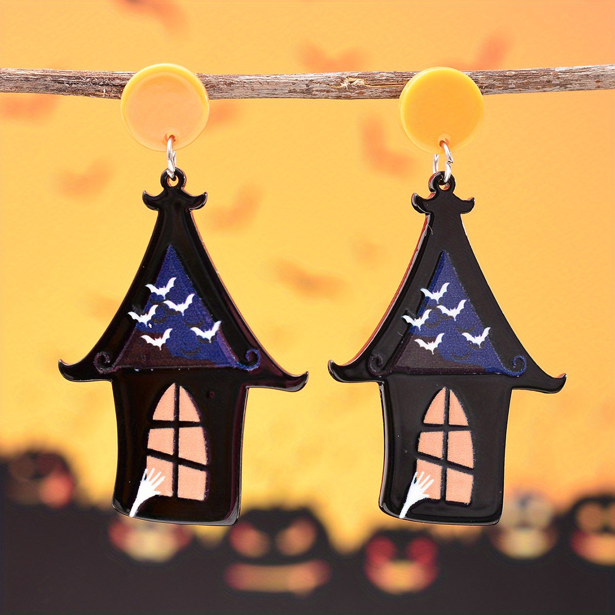 These isolated castle horror dangle earrings are perfect for Halloween, featuring a retro party style design made of acrylic. Ideal creative gift for females.